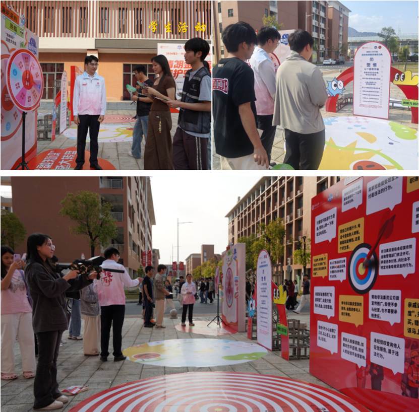 本次活动由国家金融监督管理总局清远监管分局、中国人民银行清远市分行、清远市反诈骗中心联合指导,清远市金融消费权益保护联合会、清远市银行业协会主办,校银警多方携手组建“护苗联盟”。针对当前学生群体中兼职刷单、虚假购物、游戏账号交易等电信诈骗高发问题,学院打破传统讲座枯燥乏味的宣教模式,以青年学子喜闻乐见的游园闯关形式,让反诈知识精准触达。