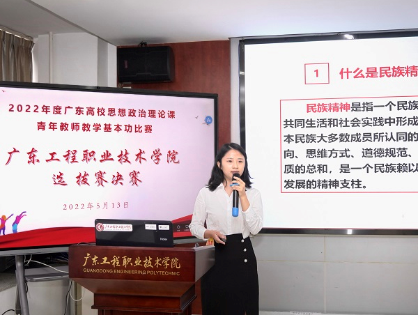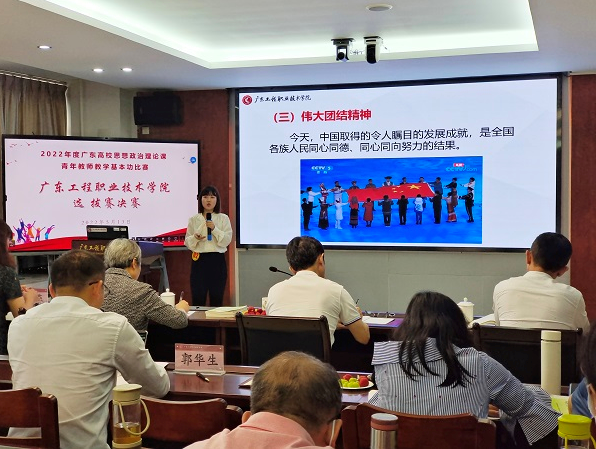 2022513日,我校在广州校区办公楼511室举办了2022年度广东高校思想政治理论课青年教师教学基本功比赛校内选拔赛决赛,学校党委副书记方燕教授、广州番禺职业技术学院曹群教授、顺德职业技术学院董同彬教授、广东农工商职业技术学院李晓培教授、广东机电职业技术学院林国强教授担任了比赛的评委,我校马克思主义学院院长郭华生在开幕上致辞,并主持了决赛。我校及其他兄弟院校专兼思政课教师近50人现场观摩了比赛。
