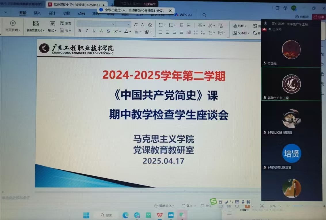 为深入了解教学情况,提升我校思想政治理论课教学的针对性和有效性,马克思主义学院于4月16日、17日,分别就本学期已开课的各门课程,组织召开了期中教学检查师生座谈会。会议采用腾讯会议形式进行,参会人员包括全体授课教师以及学生代表。座谈会特邀学校的教学督导柏欣副教授出席,马克思主义学院院长郭华生、副院长曾名沁参加了座谈会。