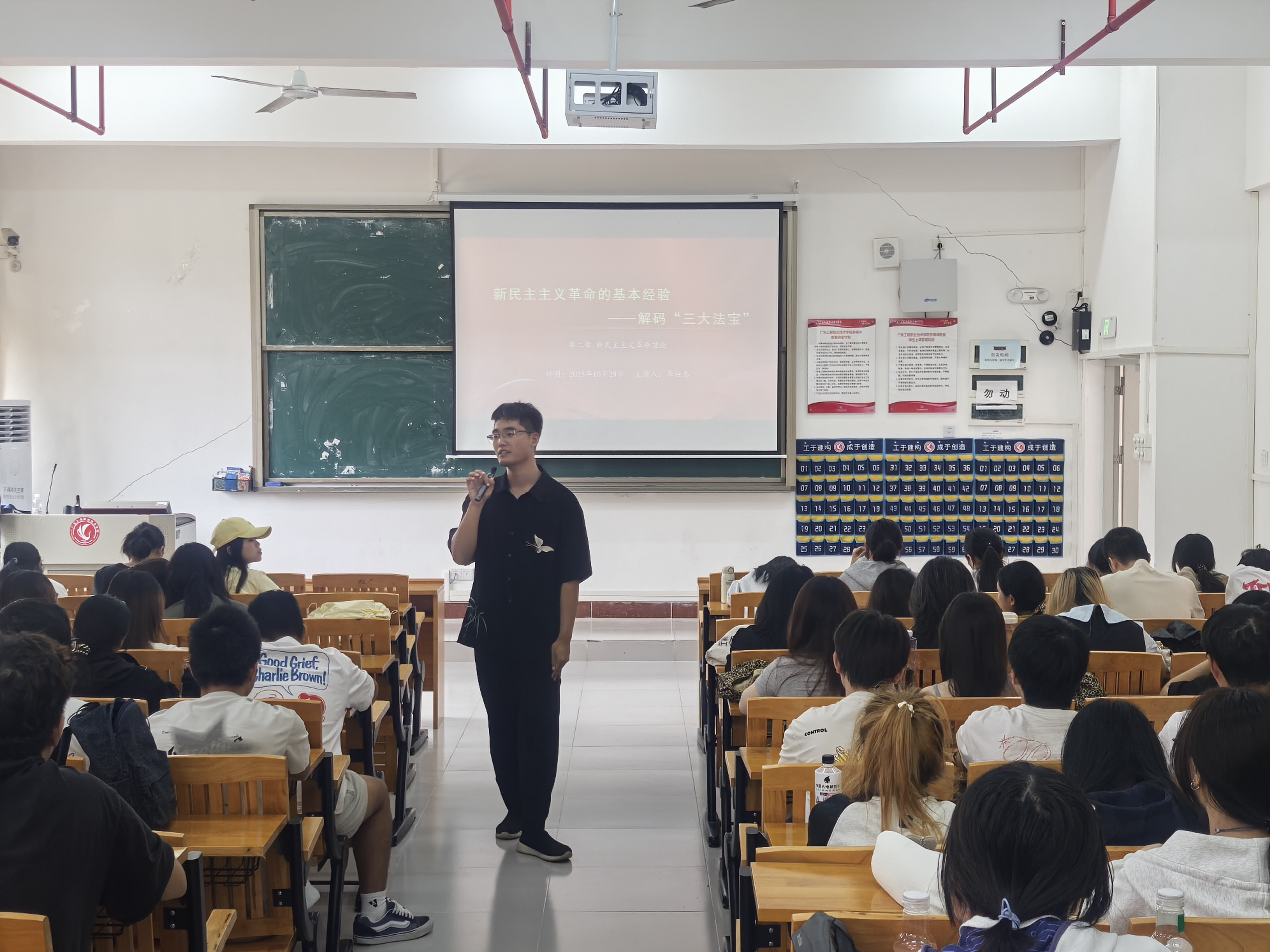 为扎实推进学校思政课建设内涵式发展,提升青年教师教学水平,马克思主义学院于2025年10月29日在清远校区Q1-418课室开展了青年教师公开课活动。