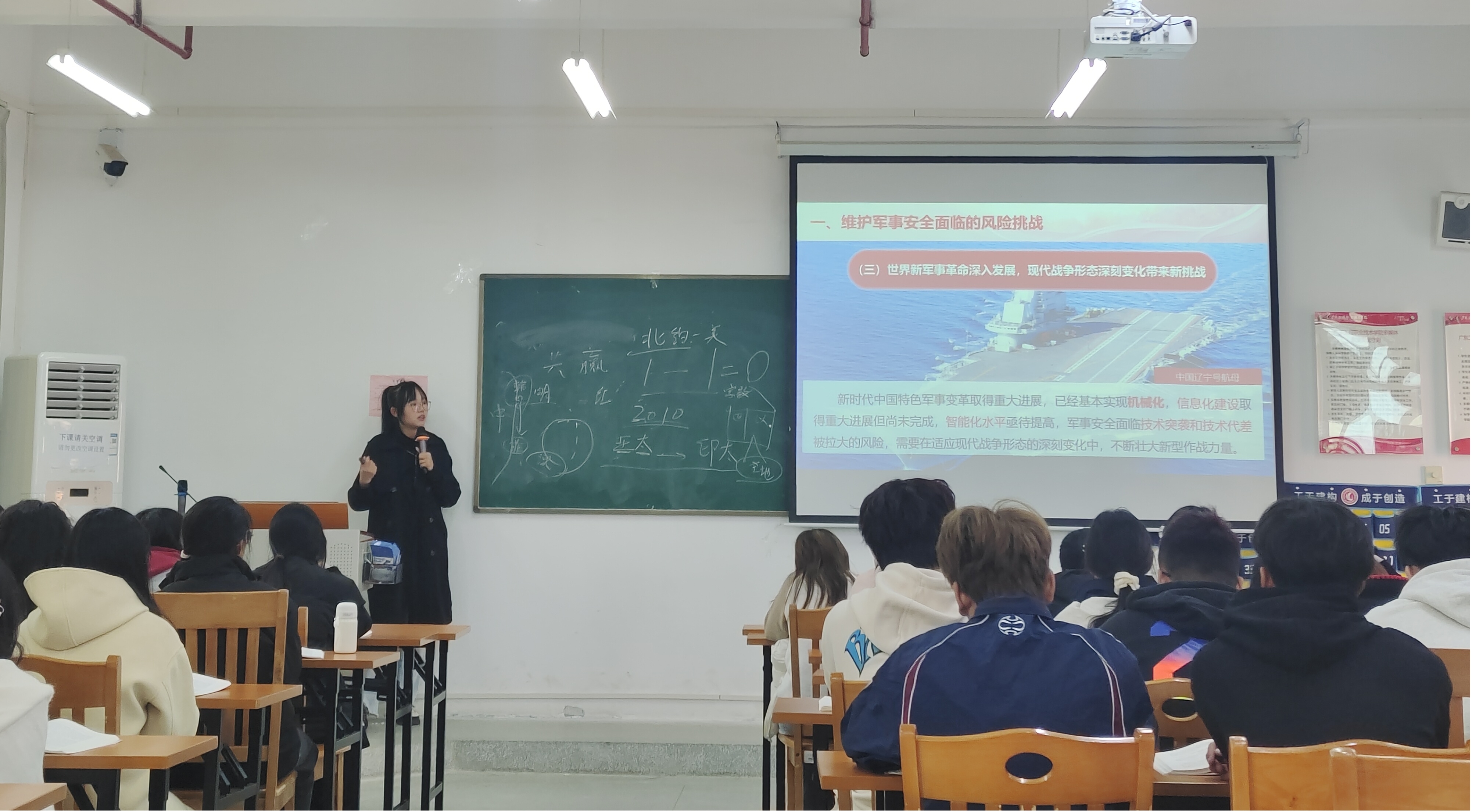 本场公开课由童淳老师主讲,她围绕“新时代军事、科技、文化、社会安全面临的风险挑战”这一主题进行讲解。在教学过程中,童老师通过丰富、新颖、典型的案例和接地气的语言表达,巧妙地将教材语言转化为教学语言,拉近与学生的距离,增强课堂的吸引力与感染力。