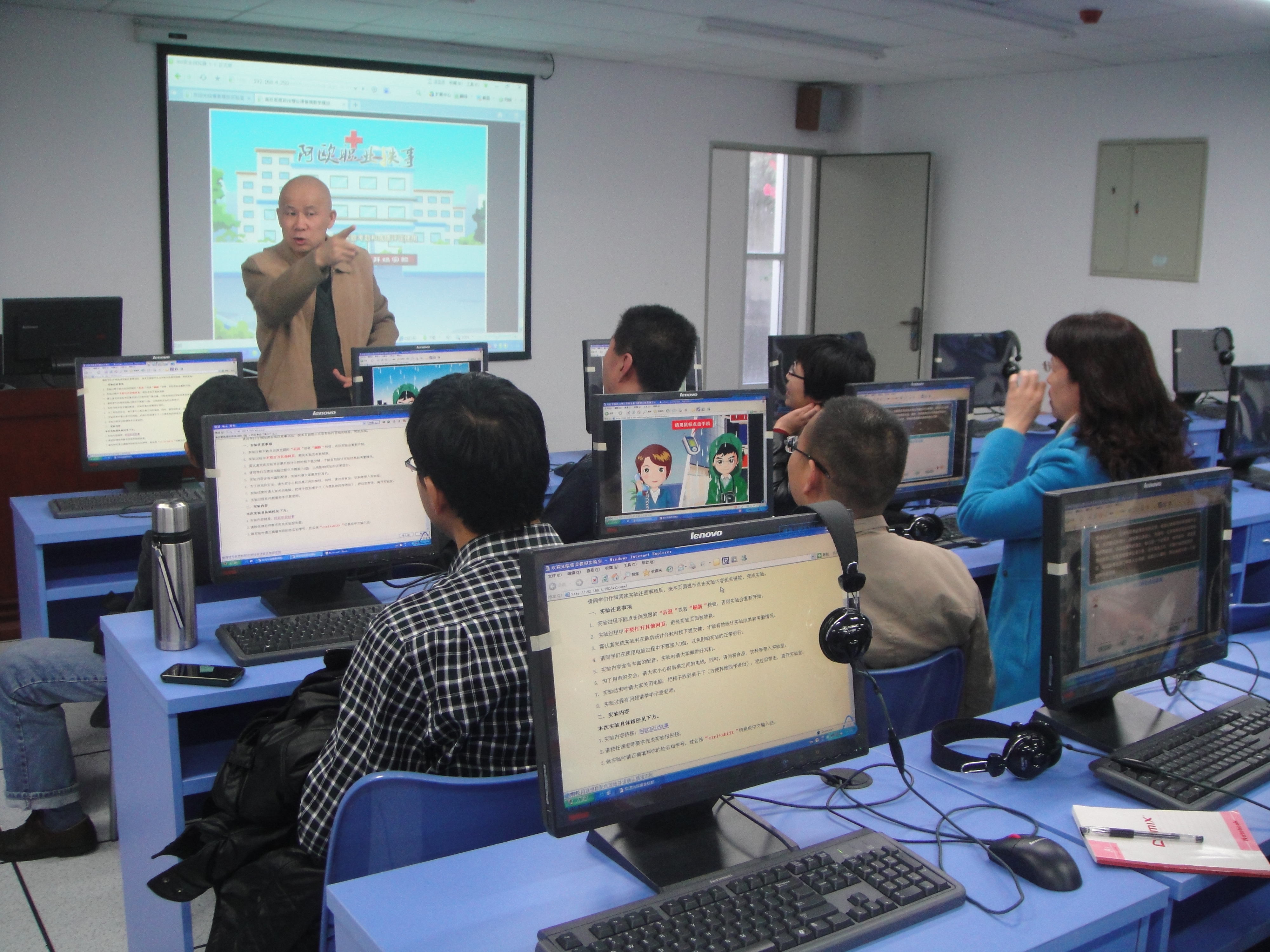 罗石教授指导我部教师上机体验模拟实验