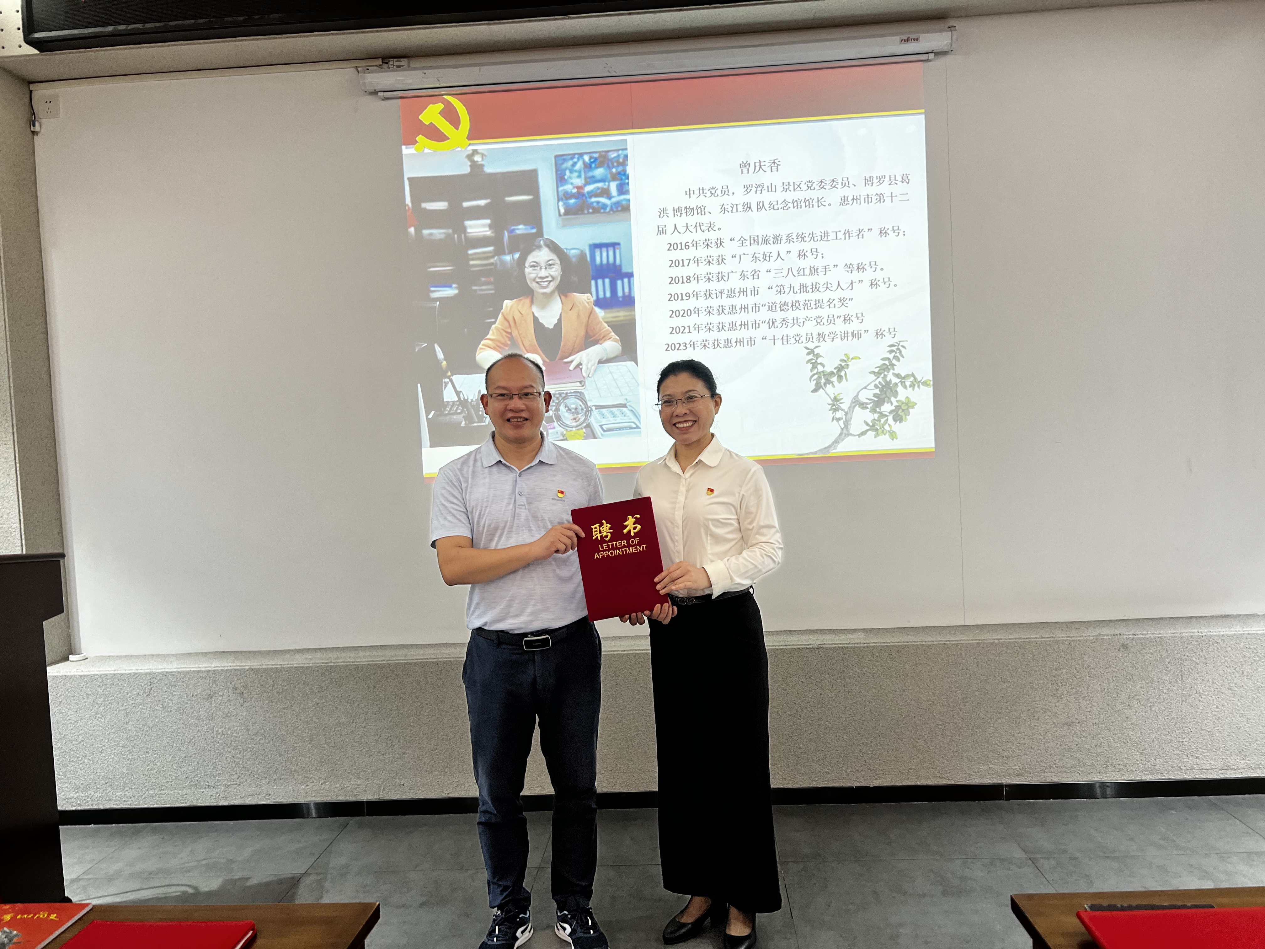 东江纵队纪念馆馆长曾庆香为马克思主义学院教师第二党支部党员教师上了一节题为《赓续红色血脉 传承东纵精神》的党课。曾馆长从东江纵队取得胜利的四个法宝、做一名对党忠诚、干净、担当的党员干部,树立全心全意为人民服务的思想等三个方面为与会党员教师上了一堂生动的党课。党员们表示,通过本次党课学习,对东江纵队的革命历程和党纪事迹有了更深的了解,要把东江纵队战士们严肃党纪、英勇无畏的精神传承下去。