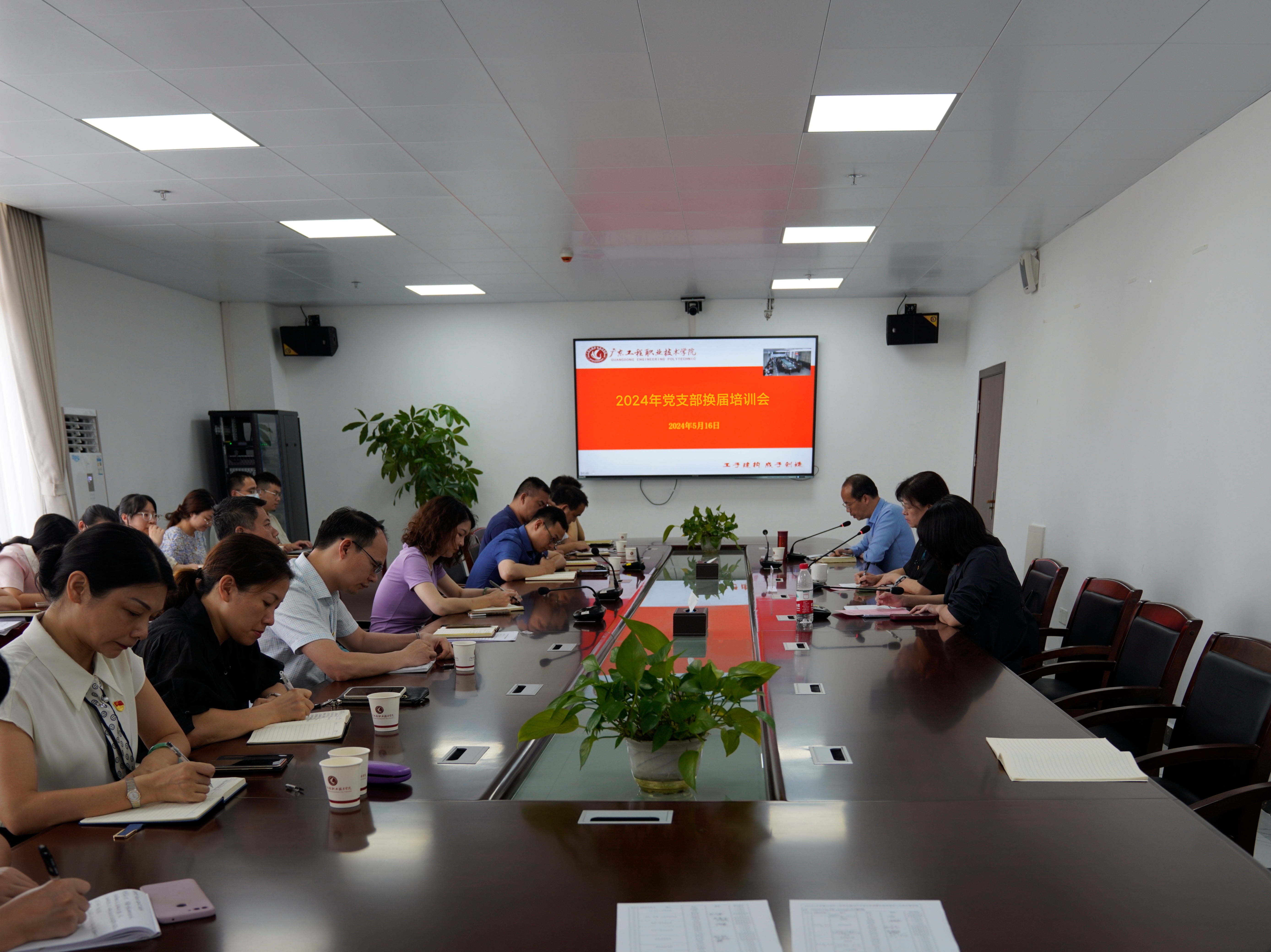 5月16日下午,学校通过视频连线方式在广州校区办公楼615室和省职教城校区办公楼509室召开5月份党建与宣传工作例会暨2024年党支部调整和换届工作培训会。党委方燕副书记,党政办公室、学生工作部、团委负责人,各二级党组织负责人、组织员,2024年换届的党支部书记、组织委员,组织统战部、宣传部(武装部)全体人员。会议由组织统战部副部长佘细花主持。