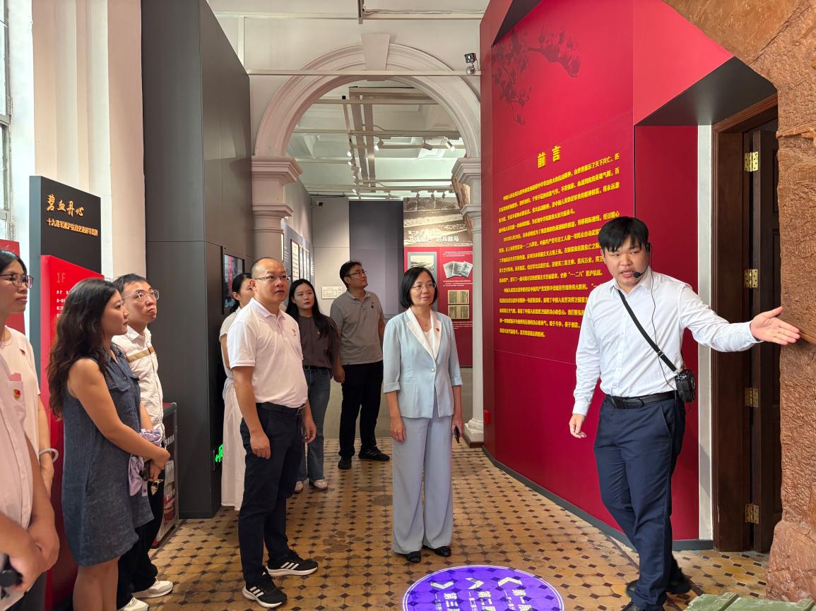 学校党委副书记陈冬梅与支部党员观展聆听英烈事迹讲解