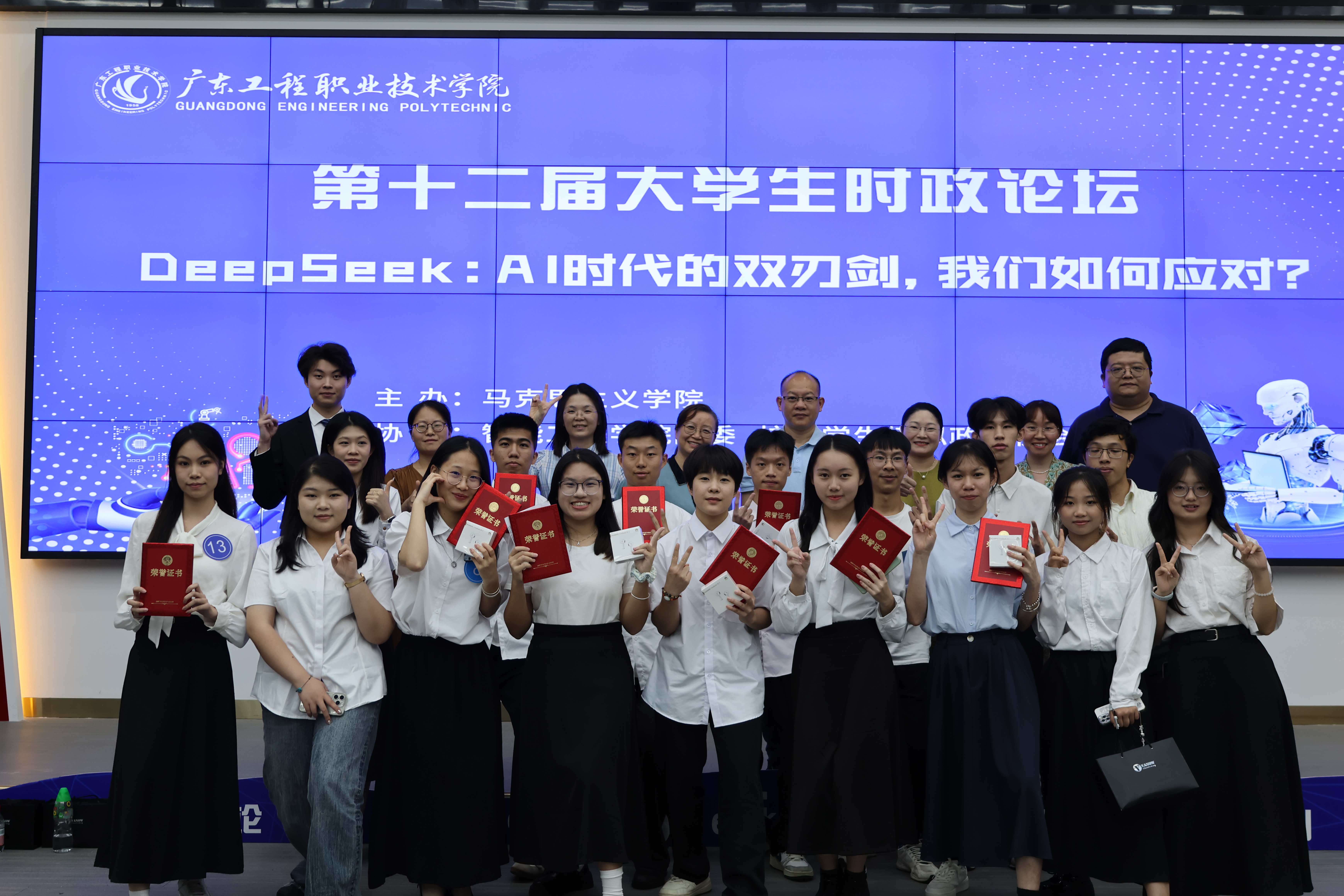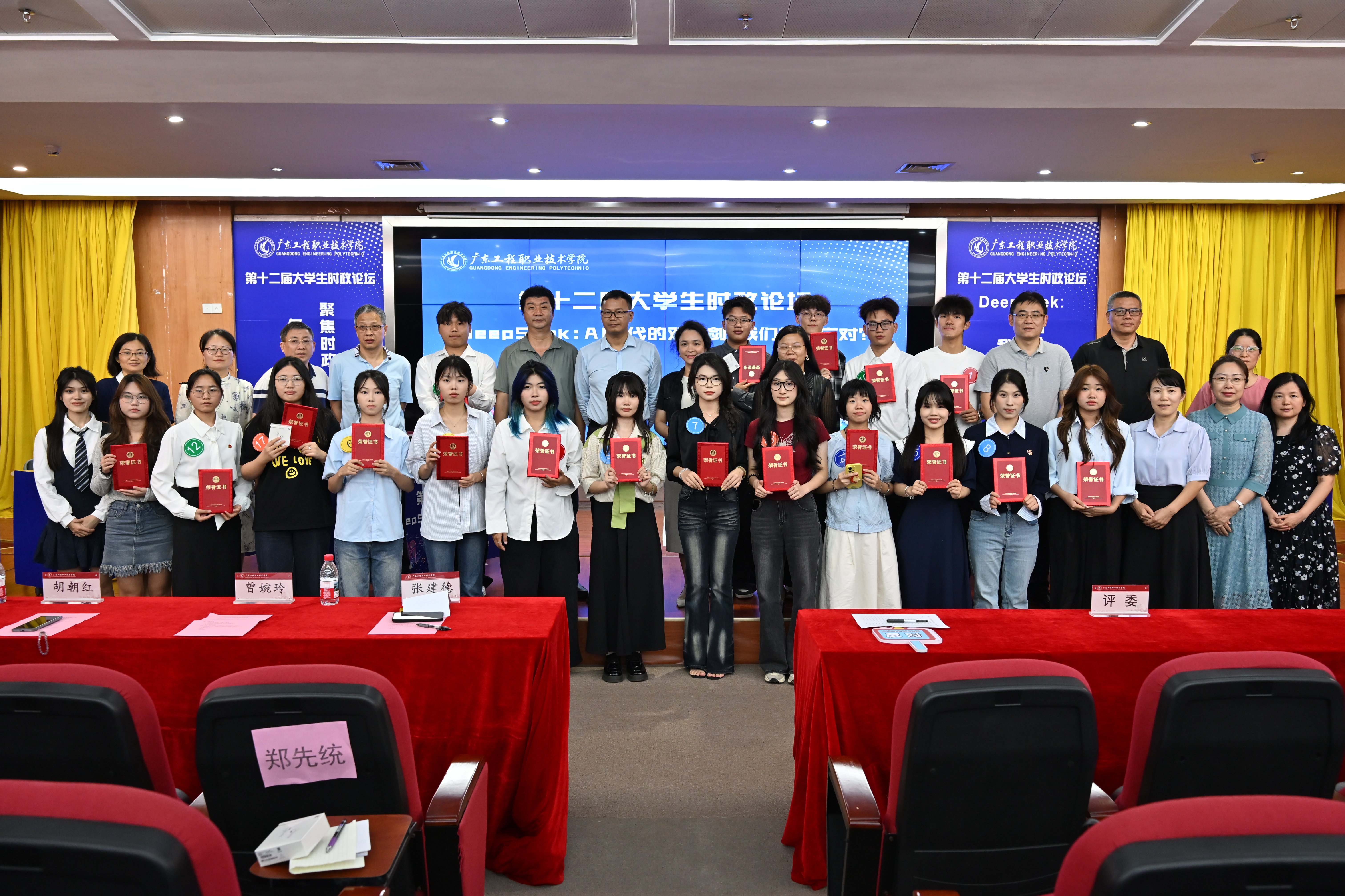 为进一步落实立德树人的根本任务,培养大学生理论素养、思维品质和创新性能力。2025年5月13日、14日,学校第十二届“大学生时政论坛”决赛分别在广州校区和清远校区举行。本次活动由马克思主义学院主办,智能工程学院团委和校大学生模拟政协协会协办,马克思主义学院党委书记张建德、马克思主义学院院长郭华生、智能工程学院党委副书记曾婉玲、智能工程学院团委书记胡朝红及马克思主义学院全体教师,两校区近400名师生出席了论坛活动。