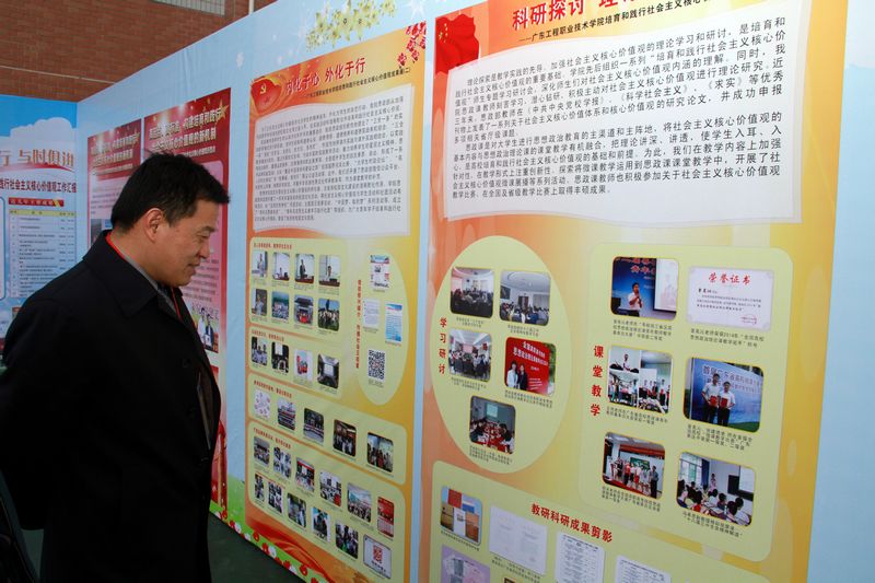 李艇副校长在参观我校思政部的展板