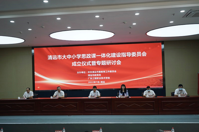 “鼓励各地高校积极开展与中小学思政课共建,共同推动大中小学思政课一体化建设”。2022年7月8日,清远市大中小学思政课一体化建设指导委员会成立仪式暨专题研讨会在我校省职教城校区举行,来自不同学段不同类型的专家学者、教研员、名师和骨干教师齐聚一堂,共同为大中小学思政课一体化建设建言献策。该活动由清远市教育局、我校马克思主义学院和广东省高校思想政治理论课方燕名师工作室联合举办。清远市教育局领导,清远市大中小学思政课一体化建设指导委员会委员、专家指导组成员,学校领导、清远市不同学段不同类型教师代表参加了本次活动。