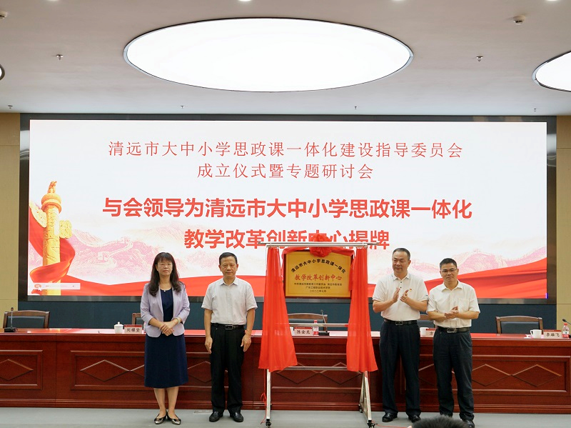此次大中小学思政课一体化建设指导委员会和大中小学思政课一体化教学改革创新中心的成立,由清远市教育局和我校共同发起和推进。在成立仪式上,清远市教育局领导和我校领导共同为建设指导委员会委员、专家颁发聘书,与会领导、专家共同为清远市大中小学思政课一体化教学改革创新中心揭牌。我校方燕教授被聘为清远市大中小学思政课一体化建设指导委员会副主任委员和专家指导组执行组长,马克思主义学院院长郭华生被聘为清远市大中小学思政课一体化建设指导委员会专家指导组成员。