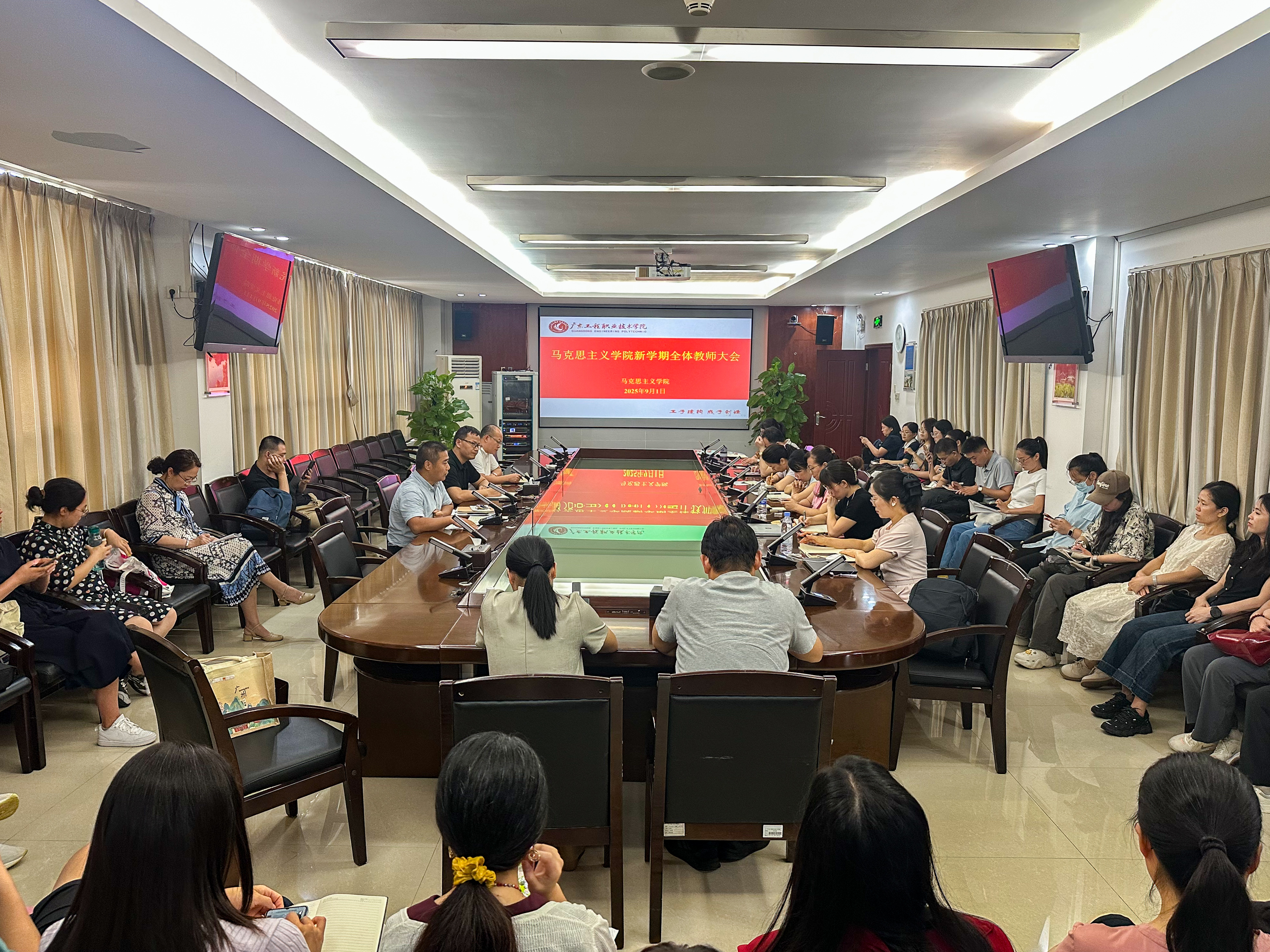 9月1日,马克思主义学院在广州校区办公楼615会议室召开秋季学期全体教师大会暨师德师风警示教育会议,学院全体教师参会。本次会议回顾暑期工作成果,明确新学期工作重点,为新学期各项工作有序开展筑牢基础。