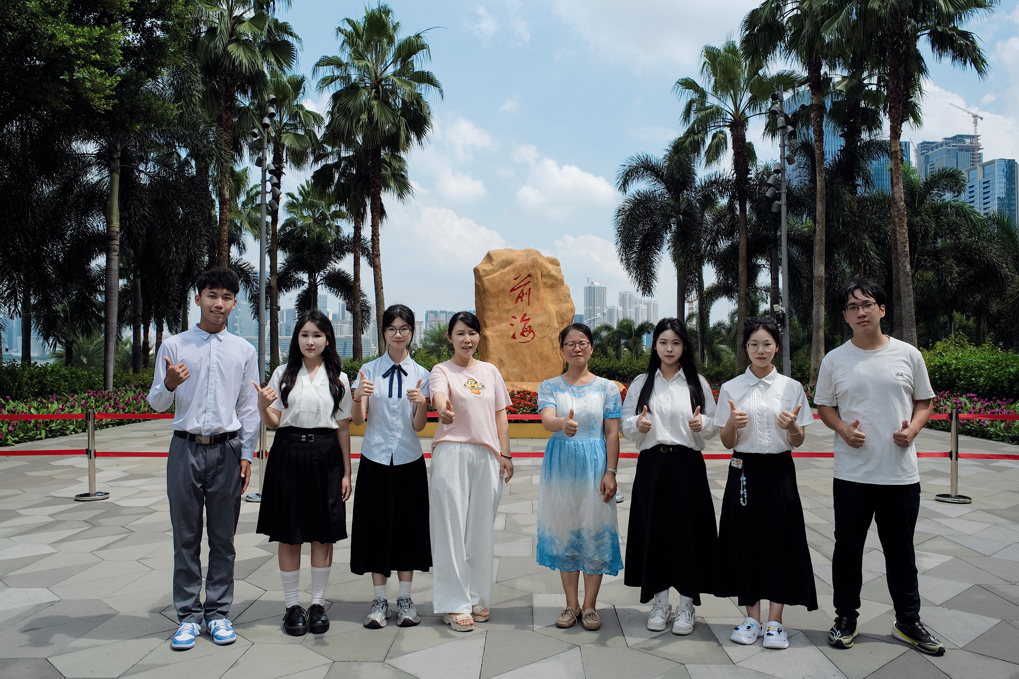 如今,改革的火炬,点亮了新时代的“试验田”——深圳前海。实践团第三站来到前海石公园。园内闻名遐迩的“前海石”,是一块刻有“前海”二字的巨型黄蜡石,见证了两次重大历史时刻。作为“特区中的特区”,前海以改革驱动开发建设提速,肩负为国家深化改革开放探路的战略使命,已成为粤港澳大湾区的核心引擎与发展标杆。