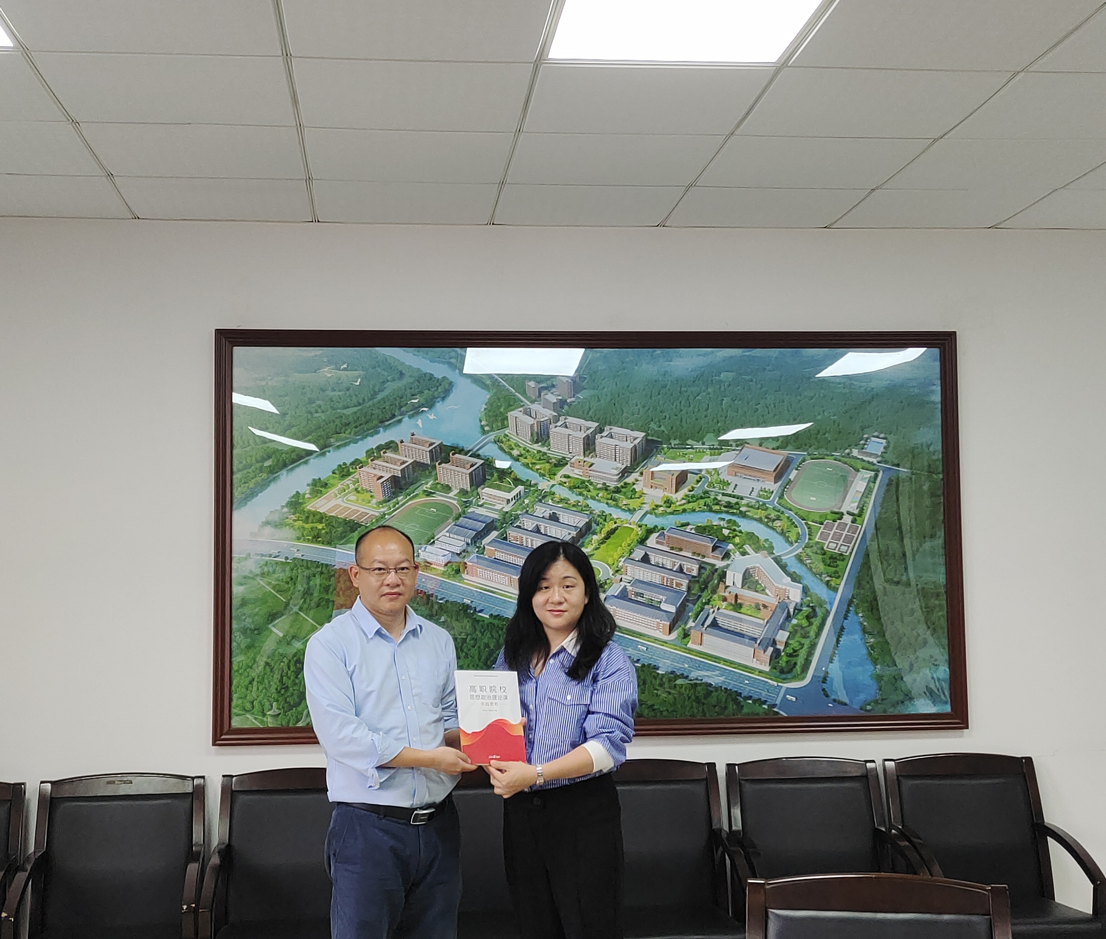 会上,张建德代表马克思主义学院对广东省红色文化研究会一行的到来表示热烈欢迎,并回顾了马克思主义学院的发展历程,阐述了马克思主义学院党建品牌建设的成果,分享了我校思政课改革创新的经验与举措。郭华生院长则结合我校“大思政课”建设的探索与实践成效,从红色文化社会服务、红色文化数字资源、红色文化系列培训等方面阐述了合作构想。陈楚华秘书长也分享了广东省红色文化研究会在红色文化传承与发展的举措,并表示希望以此次调研为契机,加强双方在学术论坛、社会培训、资源整合等方面合作,共同推动红色文化进校园。交流座谈结束后,我校马克思主义学院向广东省红色文化研究会赠送了我校思政课实践教学建设成果《高职院校思想政治理论课实践教程》。
