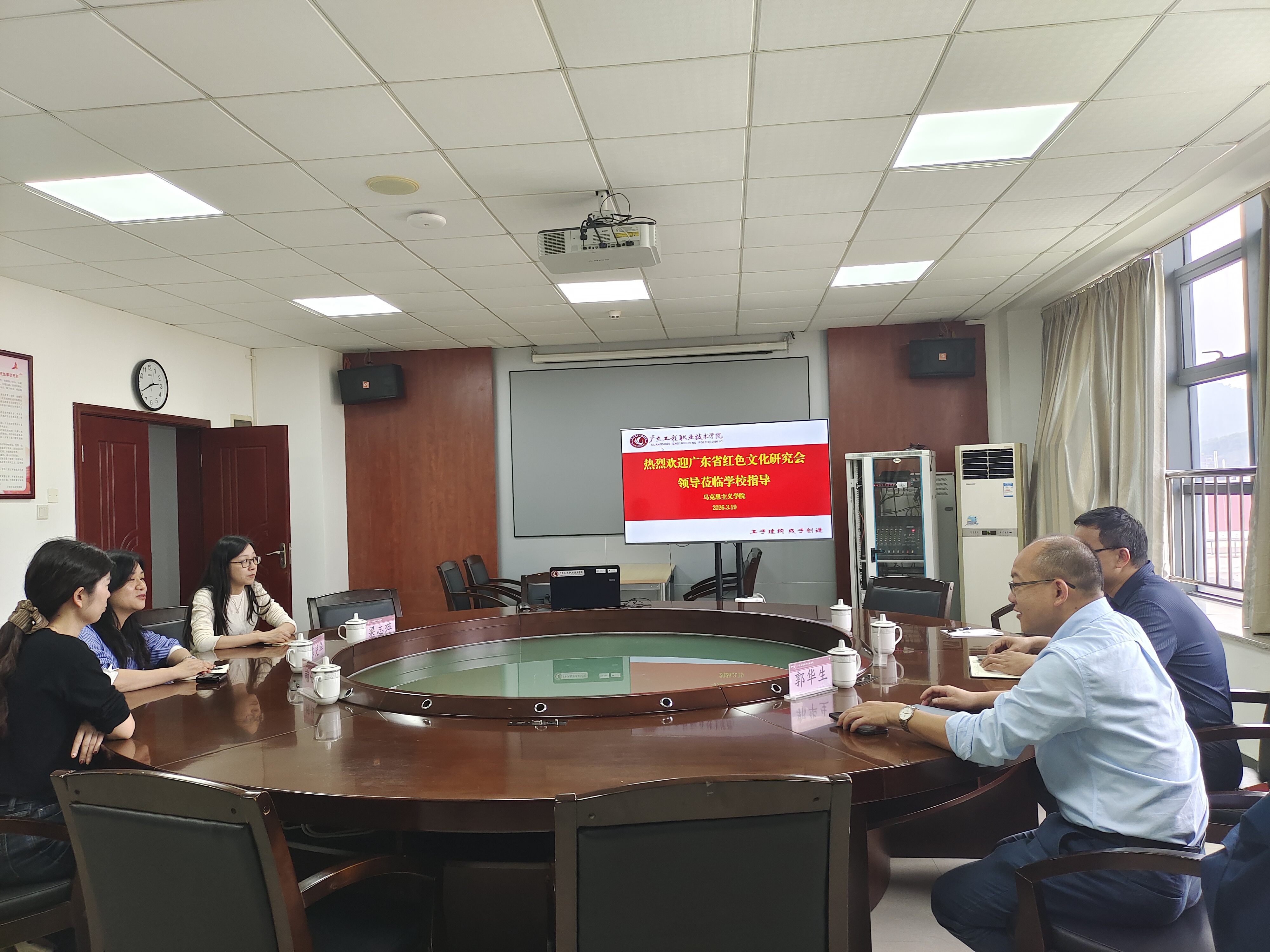 2026年3月19日下午,广东省红色文化研究会秘书长陈楚华一行莅临我校马克思主义学院开展调研交流。马克思主义学院党委书记张建德、院长郭华生和教师代表参与座谈。