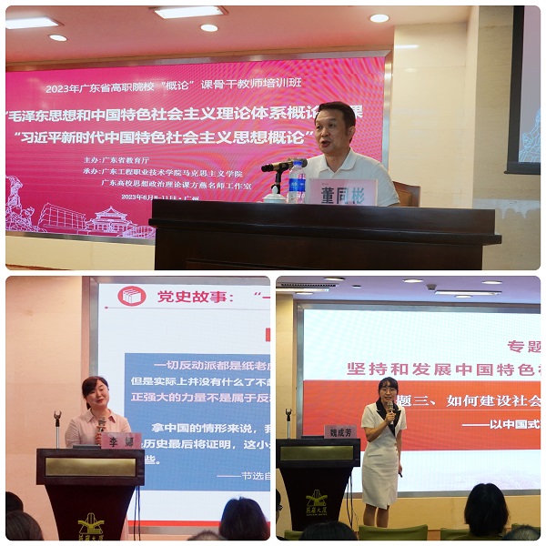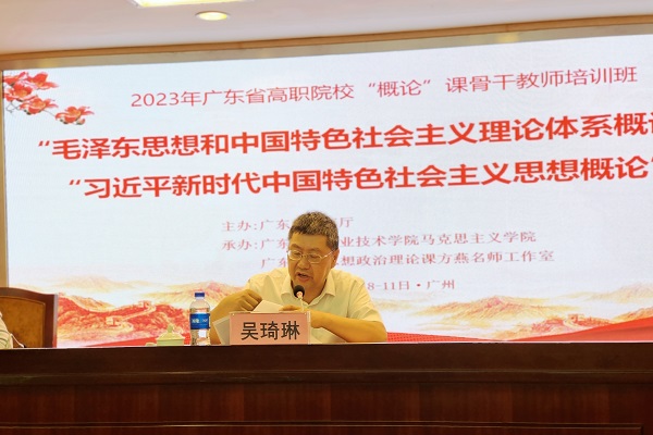 为深入开展学习贯彻习近平新时代中国特色社会主义思想主题教育,切实推动党的二十大精神融入思想政治理论课教学,提升全省高职院校思想政治理论课教师的理论素养和教学水平,打造新时代高素质的思想政治理论课教师队伍,6月8至11日,由广东省教育厅主办,我校马克思主义学院、广东高校思想政治理论课方燕名师工作室承办的2023年度广东省高职院校“习近平新时代中国特色社会主义思想概论”课、“毛泽东思想和中国特色社会主义理论体系概论”课(以下简称“概论”课)骨干教师培训班在广州成功举办,来自全省91所高职院校的260多名“概论”课骨干教师参加了培训。