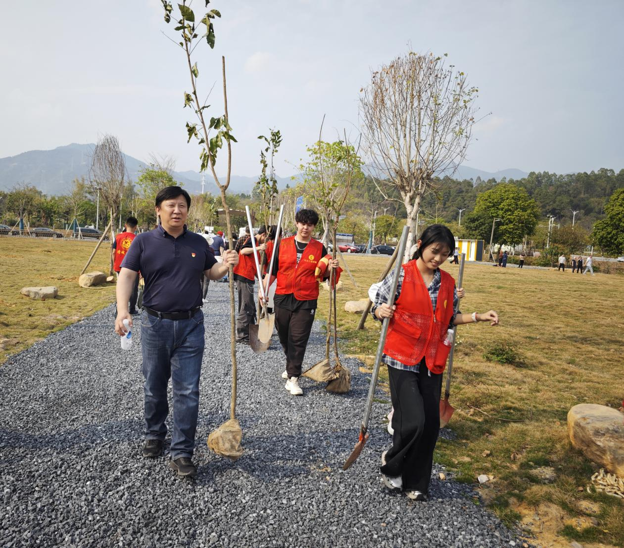 3月12日,时值中国第47个植树节 ,响应“绿美广东”号召,汽车工程学院党委联合清城区沙田沙垯岭村委,带领学院辅导员、预备党员及团学干部积极履行植树义务,于沙田沙垯岭开展植树活动。以躬身实践全面落实习近平关于生态文明建设的重要论述,为共建美丽中国注入蓬勃生机。