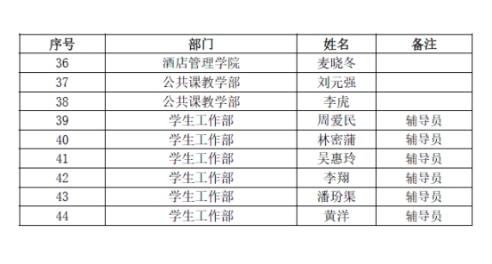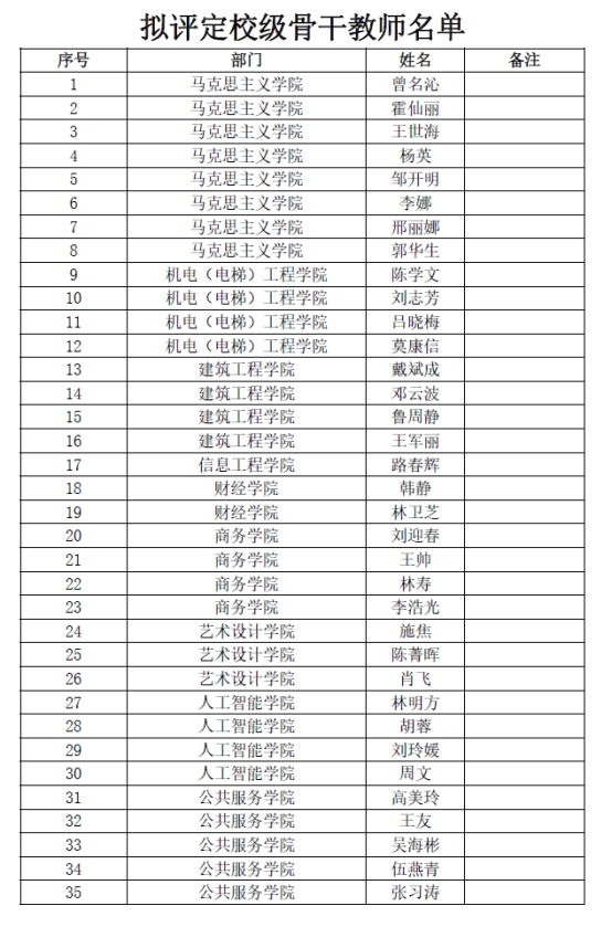 经个人申请、二级学院(部)审核推荐、相关职能部门审核、专家评审,拟评定曾名沁等44 位老师(名单见附件)为学校骨干教师;拟同意2021 年立项的校级教学名师工作室周建珊教学名师工作室结项验收;拟同意2021 年立项的校级技能大师工作室郑进辉技能大师工作室结项验收。现将上述结果予以公示,公示时间为2024 年6 月14 日-2024 年6 月18 日。若对结果有异议,请以书面形式反映。反映情况要提供具体事实和政策依据,以个人名义反映的要求签署本人真实姓名,以单位名义反映的须单位负责人签名并加盖公章;不提供具体事实材料,不签署真实姓名的,一律不予受理。