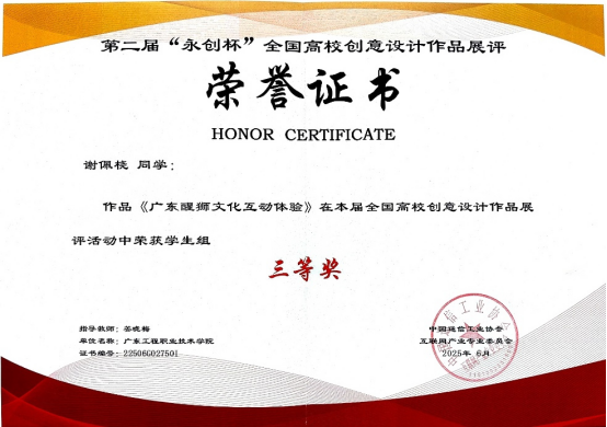 艺术设计学院将持续鼓励师生参与高水平专业竞赛,进一步推动教学内容与行业需求深度融合,强化学生的创新思维与实践能力,力争在更广阔的舞台上展现粤工程艺术学子的风采,为设计行业输送更多具有前沿理念与国际视野的优秀人才。