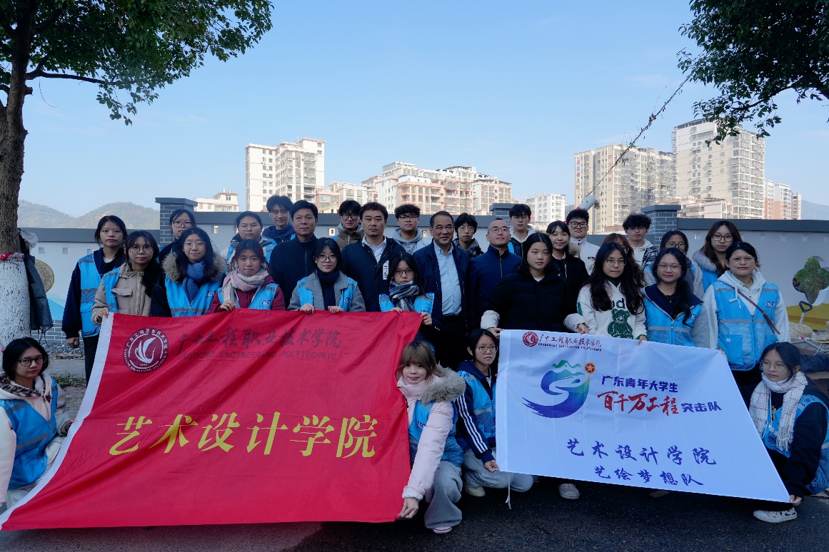 为深入贯彻广东省“百县千镇万村高质量发展工程”部署,推动乡村文化振兴与艺术实践深度融合,2025年12月26日,广东工程职业技术学院艺术设计学院“艺绘梦想队”40余名师生,在学院党委书记吴文丰的带领下,奔赴“中国青花瓷特色小镇”——梅州市大埔县高陂镇,在青花瓷公园开展以“青花瓷韵·艺绘高陂”为主题的大型墙绘创作活动。师生们以笔为媒、以墙为纸,用艺术活化乡土文化,为高陂镇乡村振兴注入青春动能。