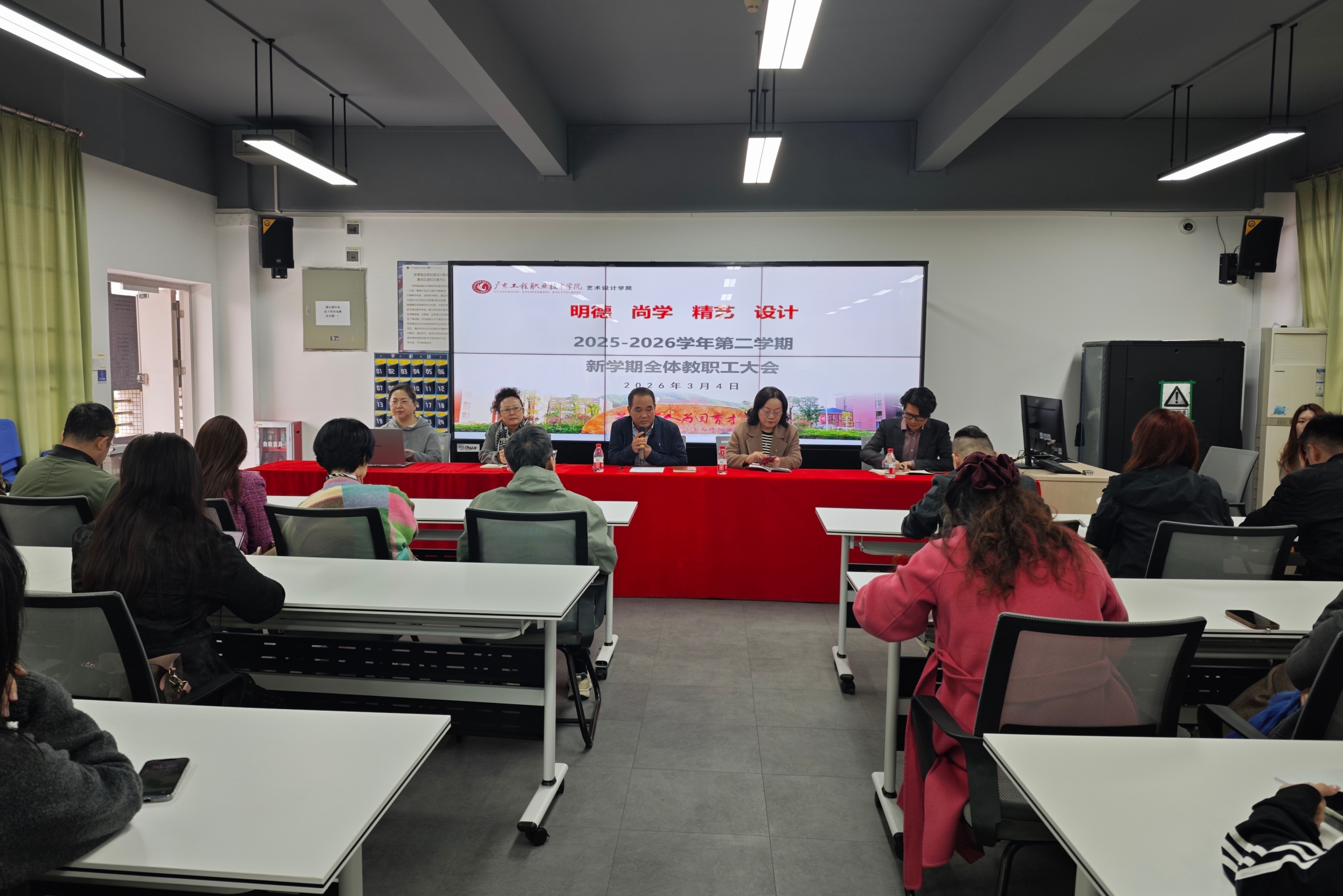 2026年3月4日,艺术设计学院召开2026年春季开学全体教职工大会,会议全面部署学院新学期重点工作。学院全体教职工参加会议。