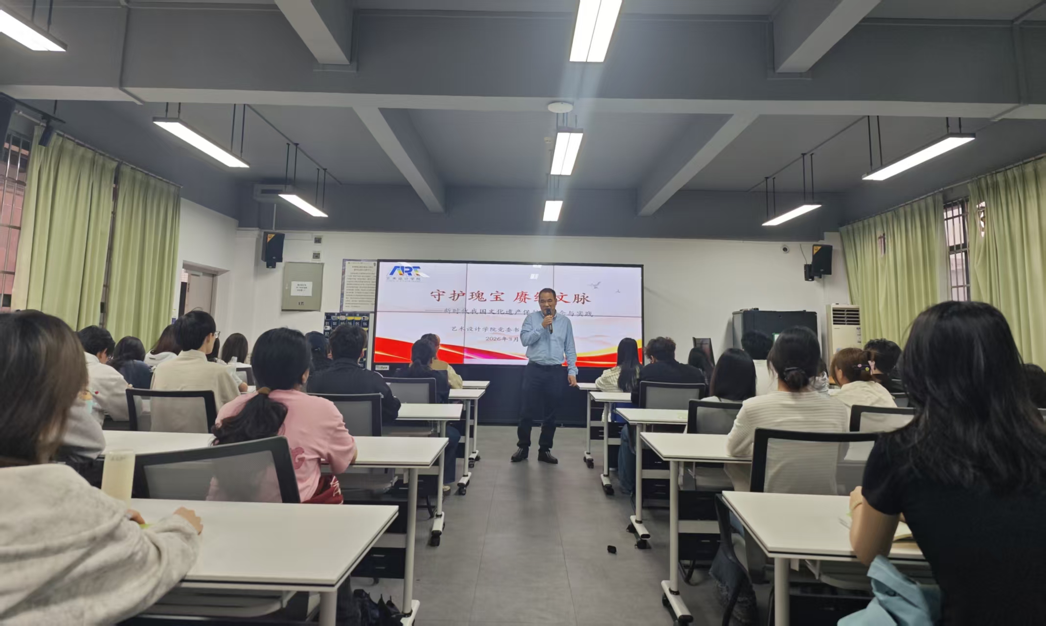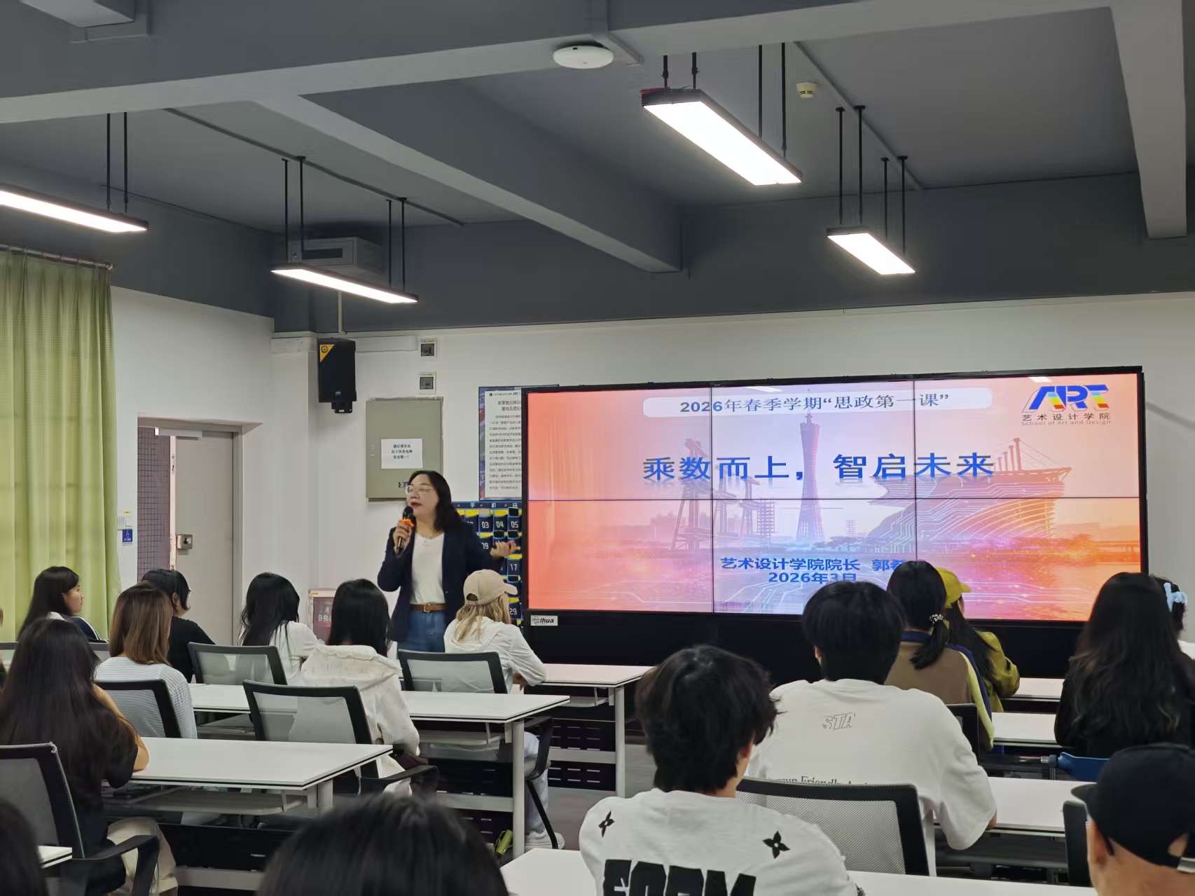 为深入学习贯彻习近平新时代中国特色社会主义思想,引导青年学子坚定文化自信、勇担时代使命,3月30日,艺术设计学院党委书记吴文丰、院长郭希在实训楼401为学院学生讲授2026年春季学期“思政第一课”。