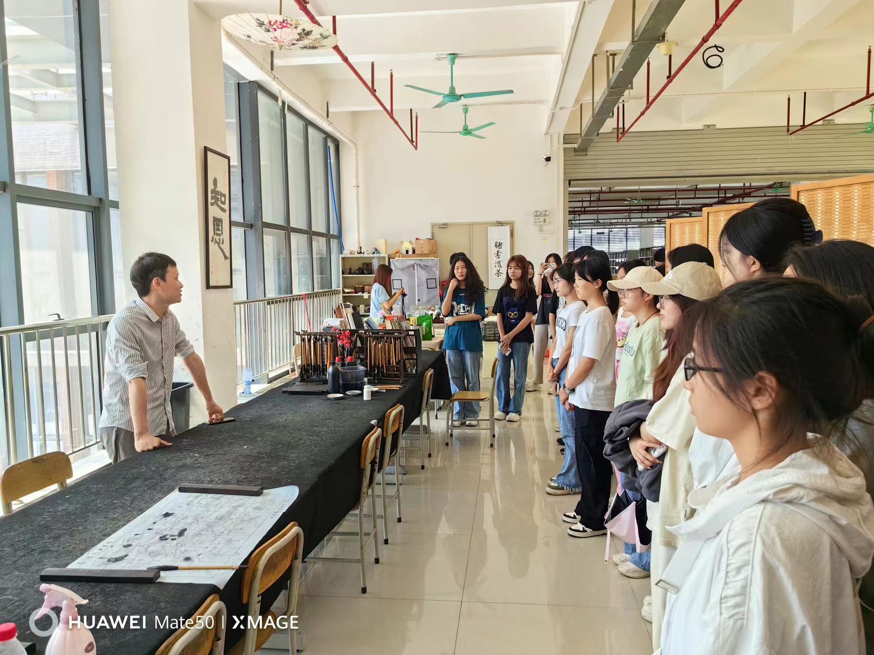 紧接着,同学们以重阳节为主题,在现场一起挥毫泼墨,进行了一场深度的书法交流,凌并文也为同学们作了现场指导。