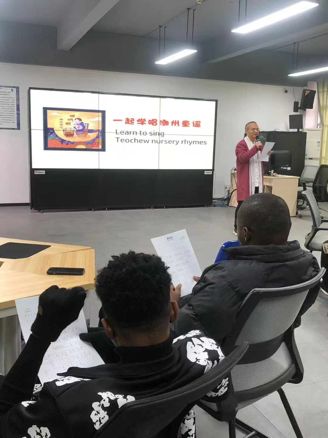 《拥啊拥》的旋律在实训5号楼5503教室里久久回荡,它不仅是一首潮语歌曲,更是一段跨越国界的文化佳话。(艺术设计学院/国际教育学院供稿 校对:施焦 审核:张华 )