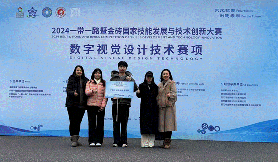 2024年12月27日至29日,艺术设计学院视觉传达设计专业五位师生参加了2024年“一带一路”暨金砖国家技能发展与技术创新大赛(数字视觉设计技术赛项)高职组全国总决赛。本次大赛汇聚了来自全国49所高职院校的80名顶尖参赛选手,共同聚焦数字内容领域AIGC技术在视觉广告中的创新应用,探索数字艺术与技术融合的新境界。