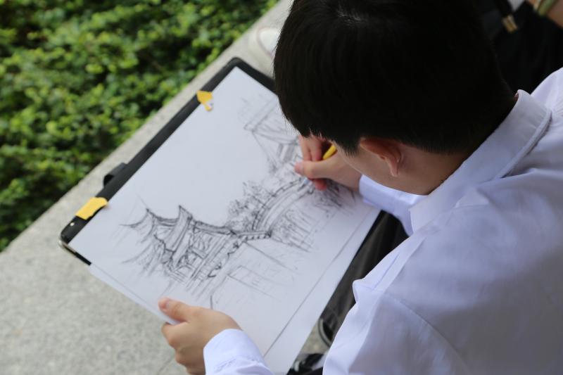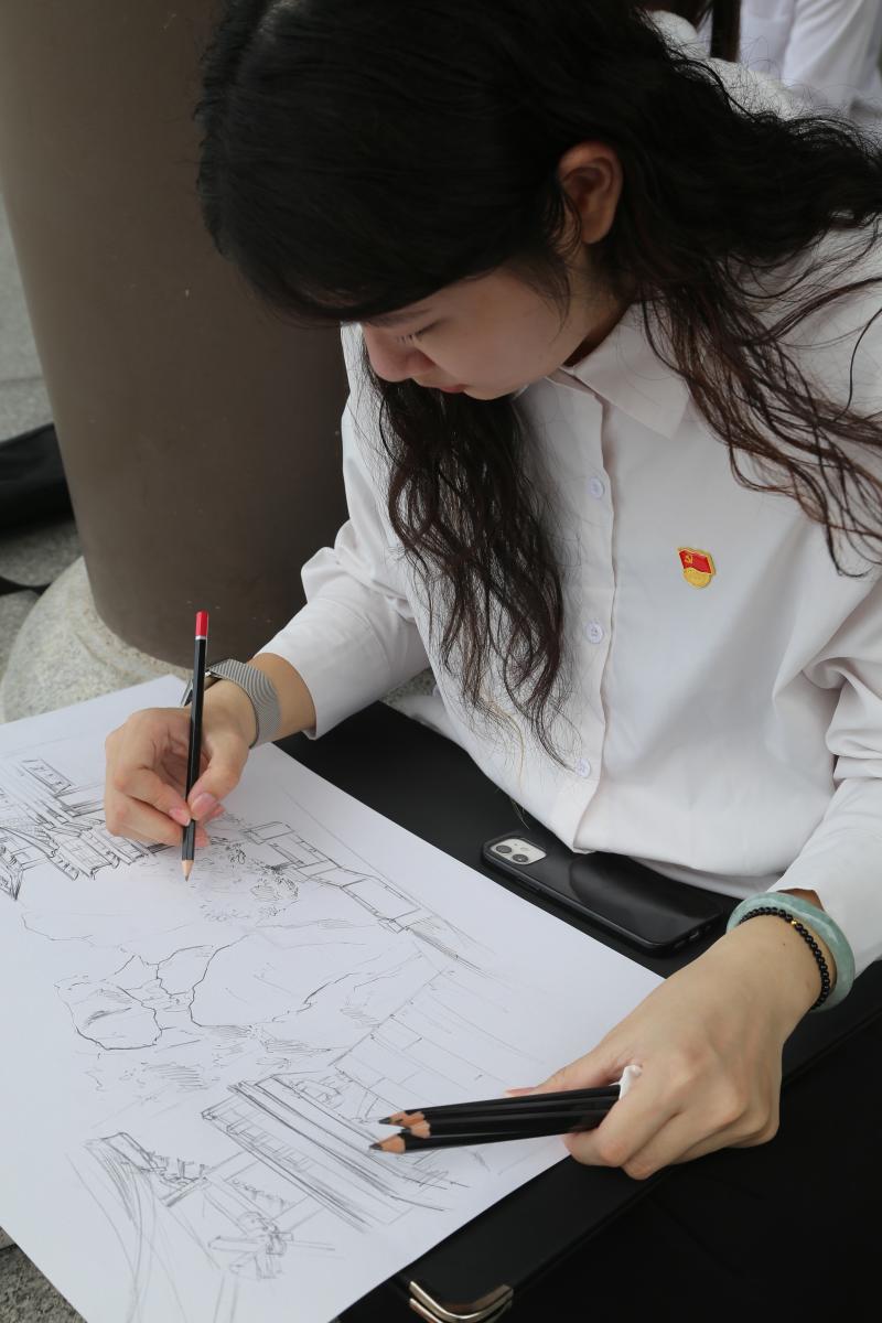 党员们在参观各大主题展馆、特色园区后,深深感受到广州市非物质文化遗产的魅力,党员们在园区内结合自己专业进行户外写生活动,用笔触传递文化力量,进一步揣摩岭南园林建筑风格,更好地领略这座城市厚重的记忆,领略包容开放的匠心精神,领略绵延不绝的文脉书香,充分感受岭南优秀文化的深厚魅力。