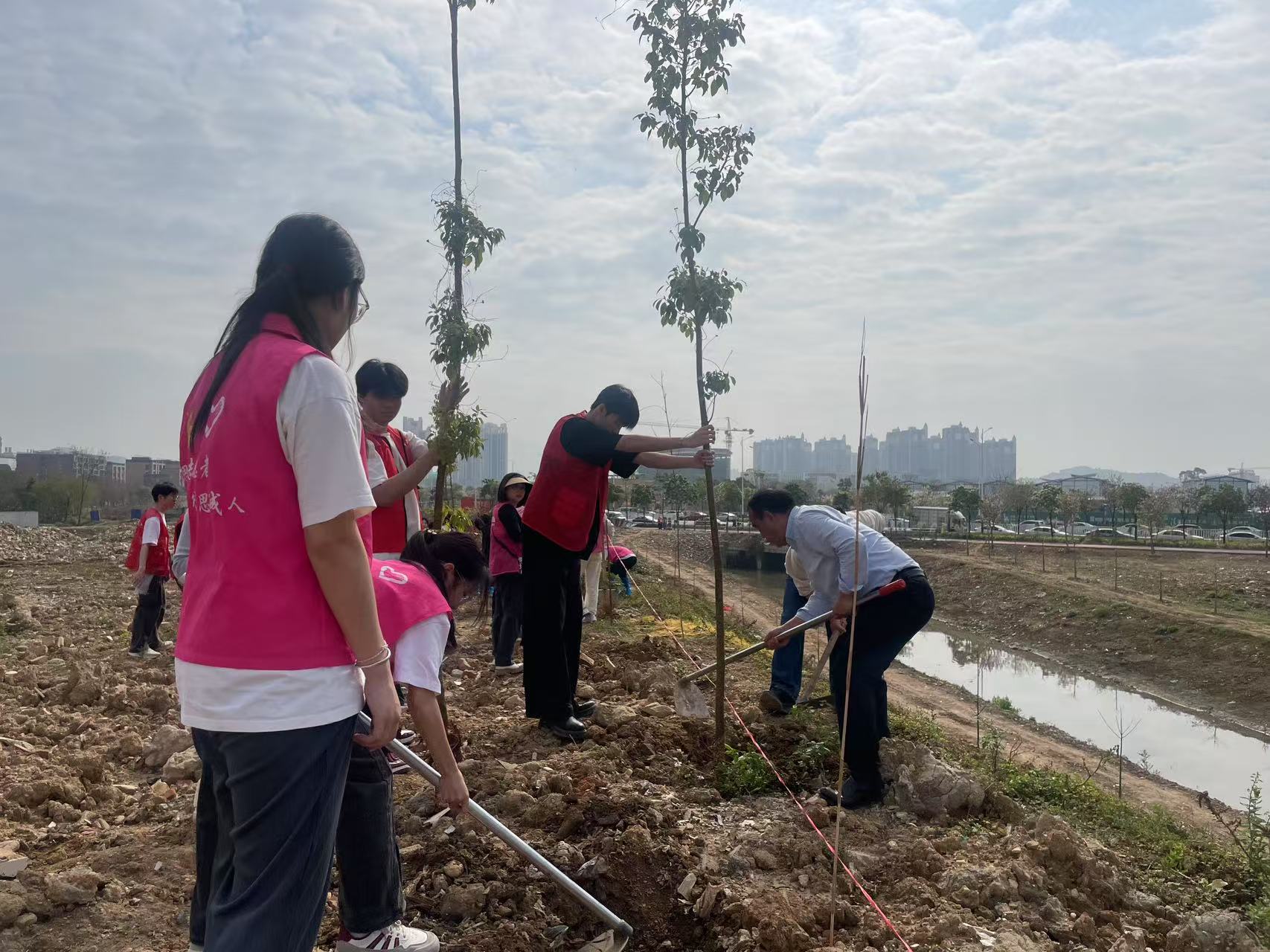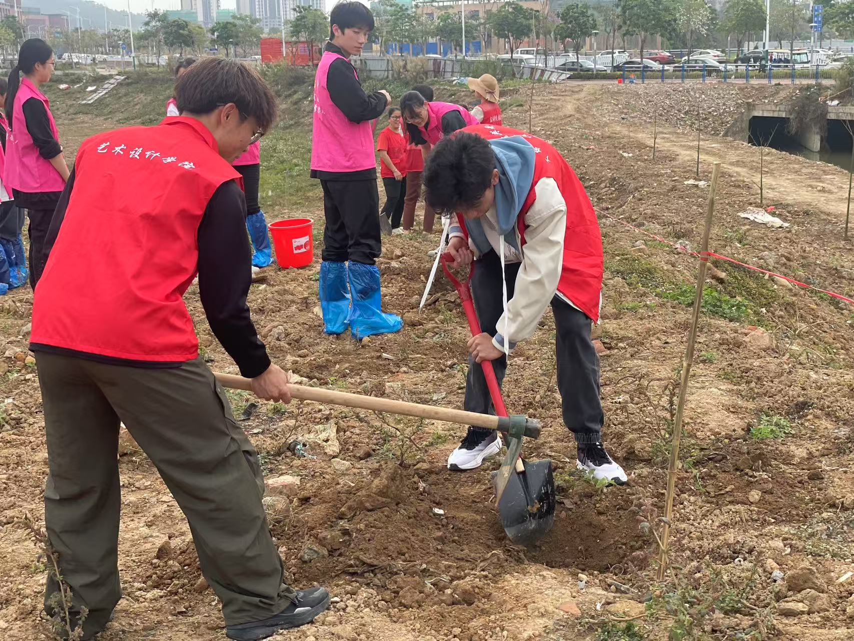 春染青山绿,党旗映初心。在第47个植树节期间,艺术设计学院党委以“红色引领添新绿”为主题,于3月7日、12日分两批组织师生党员赴清远市清城区时代社区、莲发社区开展义务植树活动,将党建实践融入生态文明建设,以实际行动诠释党员担当。