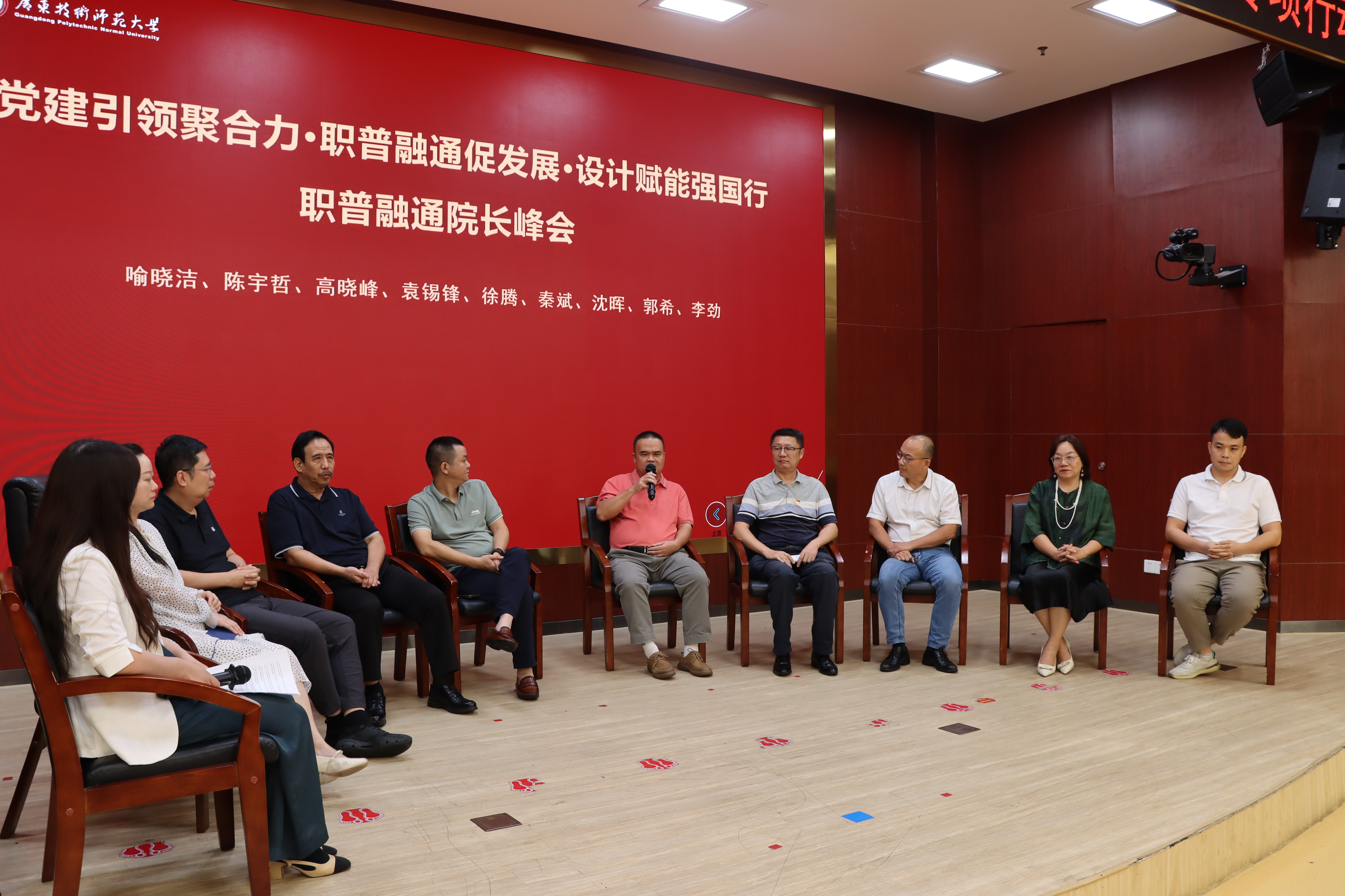 为深入贯彻落实《教育部办公厅关于开展高校“双带头人”教师党支部书记“强国行”专项行动的通知》精神,推动党建引领与设计学教育高质量发展深度融合,9月20日,设计类党支部党建联建暨职普融通院长峰会在广东技术师范大学(东校区)举办。本次会议由广东技术师范大学美术学院教工第二党支部与广东省商业美术行业协会共同发起,以“党建引领聚合力,职普融通促发展,设计赋能强国行”为主题,汇聚了来自全国普通高校、职业院校、行业企业等多名代表,我校艺术设计学院党委书记吴文丰、院长郭希、副院长姚淼仕以及包装艺术设计专业负责人陈登科一同参会,共同探寻党建与教育、产业协同发展的新路径。