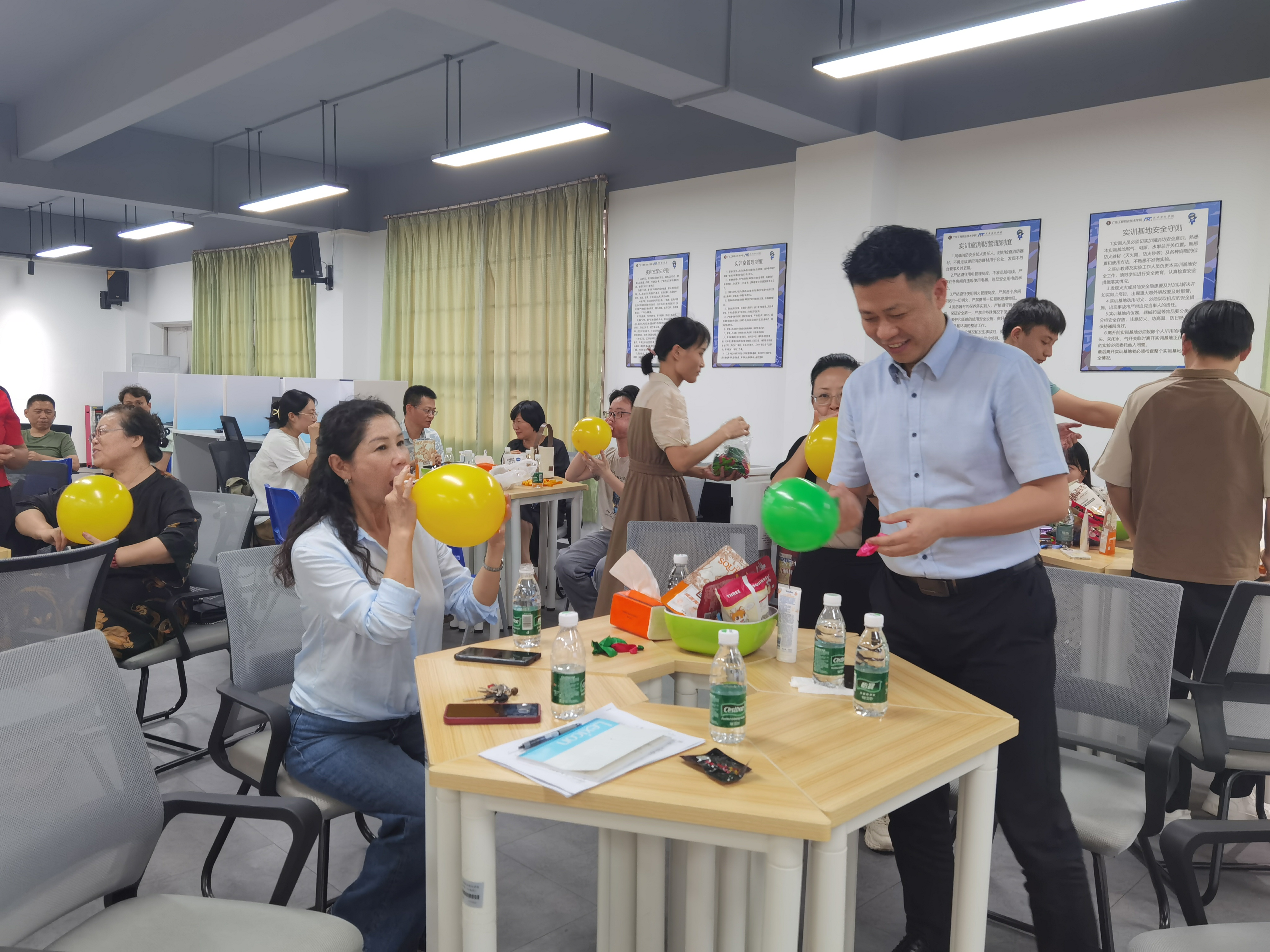 随后,全体教职工在主持人郑皓丹的带领下,一起参与了跳解压舞。大家手拉手围成圈,伴随着着欢快的音乐节奏,跳起了轻松有趣的解压舞。期间开展了拓展活动,丰富了教职工文化生活。座谈会上教职工们畅所欲言,共话发展,弘扬了教育家精神,争当新时代大先生。