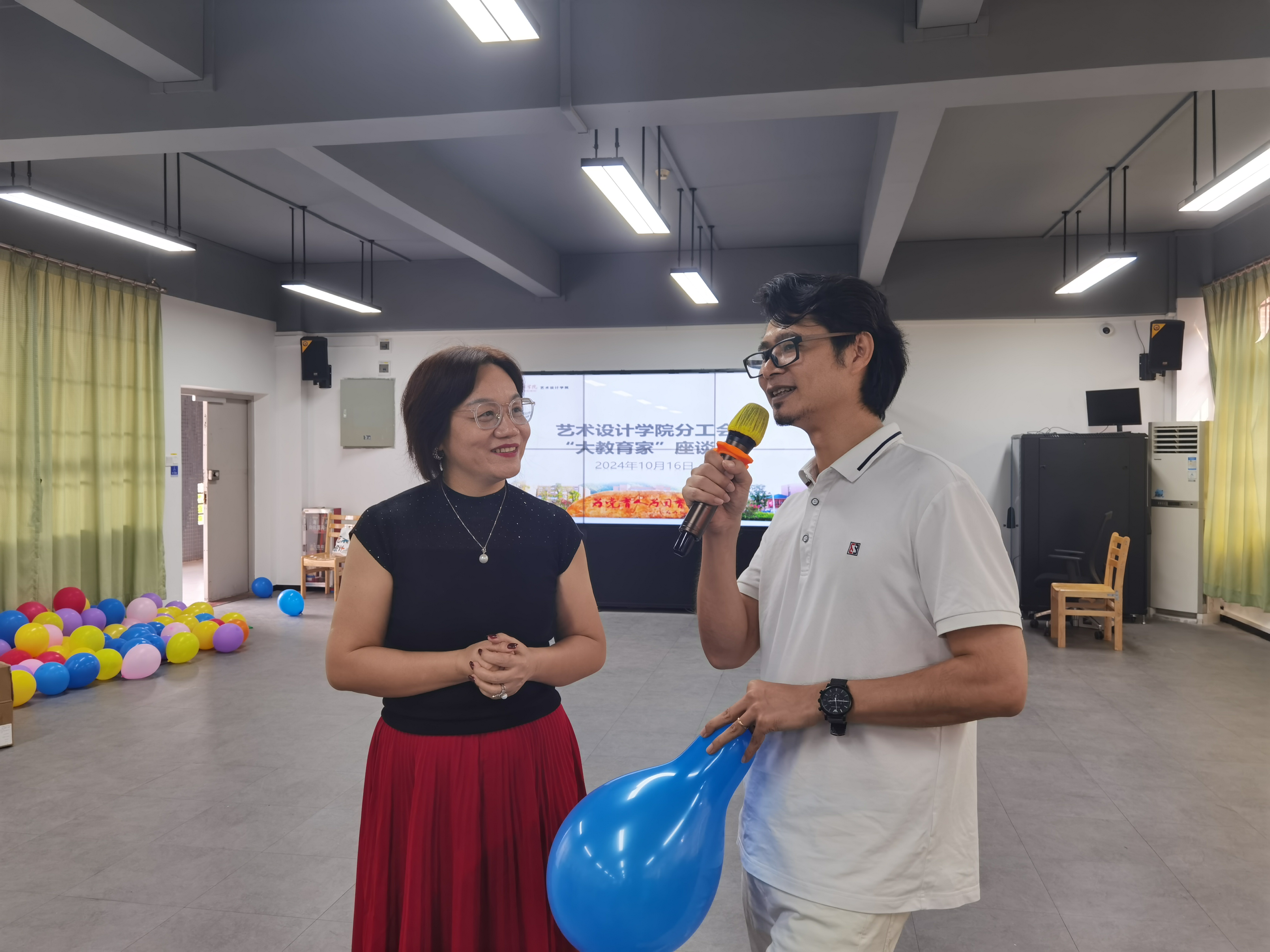 为增强团队凝聚力,促进教职工之间的交流与合作, 10月16日,艺术设计学院分工会在实训五503举办了以“弘扬教育家精神”为主题的座谈会。学校党委副书记、校长李丽作为分工会的普通一员和艺术设计学院全体教职工参加了此次座谈会。