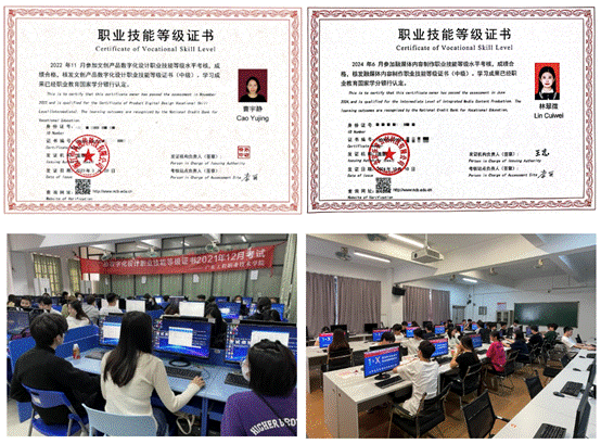 1+X文创产品数字化设计”、“1+X融媒体内容制作”职业技能等级证书和考证现场