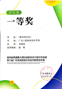 学生苏琬岚作品《陈家祠记忆》荣获广东省教育厅主办的第四届粤港澳大湾区学校设计作品展暨第六届广东省高校设计作品学院奖双年展一等奖;