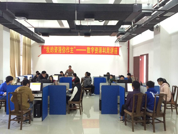 在讲座中,徐红老师通过播放PPT及网上实操等方式进行讲授,介绍图书馆数字资源的种类,包括超星数字图书馆、CNKI、维普期刊、银符考试题库等资源。徐老师逐个讲解各个数据库的特点及使用技巧,并重点讲授了使用CNKI检索论文资料的方法及使用银符考试题库进行英语等级考试、各类考证考试模拟训练的益处,鼓励学生们充分利用图书馆馆藏资源进行学习和研究。最后,学生们在徐老师的指导下进行实际操作练习。