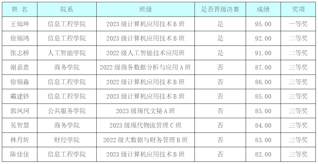 秉着激励学生们积极参赛的精神,图书馆根据校内选拔赛成绩评出前10名给予校内表彰,颁发荣誉证书。其中一等奖1名,二等奖2名,三等奖8名,获奖名单如下: