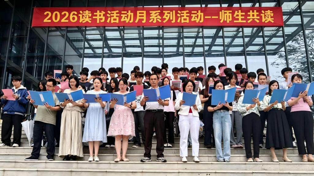 为迎接第31个世界读书日,推进校园书香文化建设,落实全民阅读理念,引导师生树立“读书是一种生活方式”的观念,4月23日,图书馆联合智能工程学院举办师生共读活动。师生代表齐聚图书馆门口,共同阅读、品味经典。