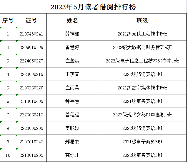 图书馆2023年5月份读者借阅排行榜和图书借阅排行榜出炉啦,快来看看最近哪几本书借阅量最大,或者来这里找找有没有你想借的书!谁是名副其实的读者?谁往图书馆跑的最勤快?谁的借阅量最大?快在上面的排行榜里找找有没有自己的名字吧!
