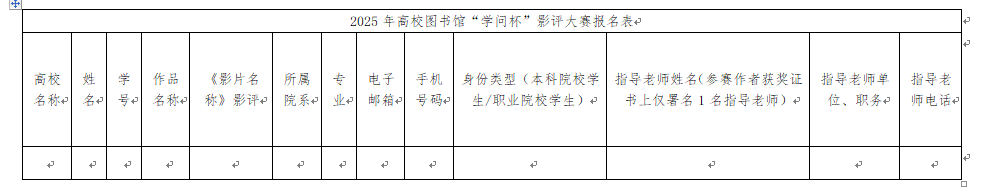 3.格式要求,题目三号黑体,小标题四号黑体,正文小四宋体,单倍行距,篇首同步复制个人报名表信息请注明高校名称、姓名、学号、作品名称、《影片名称》影评、所属院系、专业、电子邮箱、手机号码、身份类型(本科院校学生/职业院校学生)、指导老师姓名(参赛作者获奖证书上仅署名1名指导老师)、指导老师单位、职务、电话。