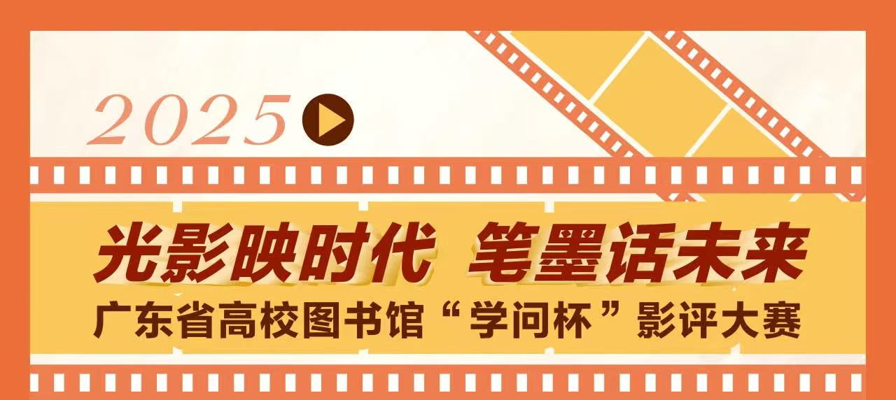 为深化国家教育强国建设具体实践,全面加强学校美育工作,促进图书馆馆际交流和业务发展,鼓励更多师生积极参与到全民阅读推广活动中,广东省高等学校图书情报工作指导委员会特举办以“光影映时代 笔墨话未来”为主题的2025年广东省高校图书馆“学问杯”影评大赛。充分运用图书馆的优质资源,通过赏析经典影视作品,点燃师生对时代精神的深刻思考,启迪对未来的美好展望。在多个维度上促进学生的全面发展,拓宽知识视野,提升审美能力,推动跨学科的学习交流,激发创新创造活力,温润心灵,培育德智体美劳全面发展的社会主义建设者和接班人,助力图书馆成为引领读者成长的精神引擎。现将有关事项通知如下: