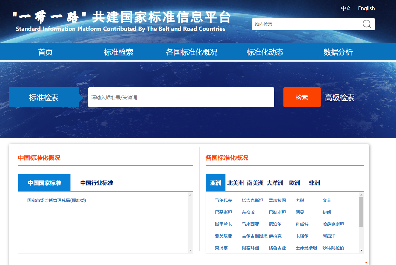 由中国标准化研究院主办的“一带一路”共建国家标准信息平台2019年4月23日上线启动,这是我国首次从标准化领域对“一带一路”沿线国家有关标准信息进行分类和翻译。
