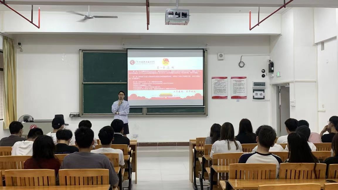 学习会上,各级团干部以主题团日活动形式带领大家学习《广东工程职业技术学院章程》相关内容,组织学生干部进行认真的讨论,对章程内容进行分解, 围绕我校的历史沿革、总则、学校管理制度、机构设置,提高大家对章程的认识。