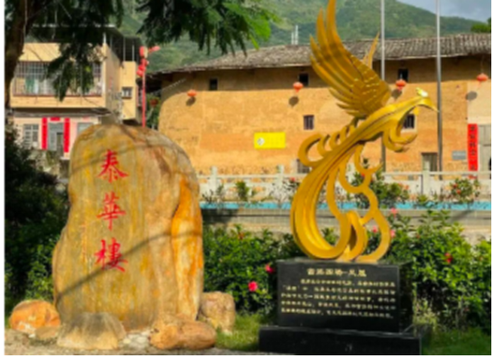 实践团队参观蓝屋畲族村的泰华楼。从随处可见的凤凰图腾以及泰华楼的建筑特色中切实了解畲族的传统文化和习俗。通过地图了解,切身感悟在党的领导下蓝屋畲族村的变化发展。