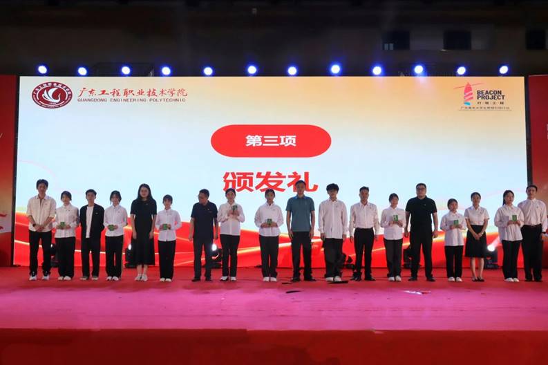 会上,张小广副校长宣读了学校“五四”创先争优表彰决定后。随后,会议分别对2023年广东省大学生暑期三下乡优秀个人、校青年大学习标兵支部、五四红旗团支部、优秀共青团员干部、优秀学生干部、优秀共青团员、先进文化个人、优秀志愿者、社会实践活动优秀个人、社团积极分子获奖代表颁发荣誉证书;优秀学生代表马鹏程同学进行了发言。