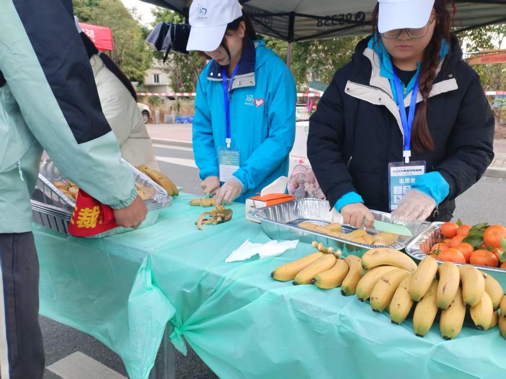 “递水手势要稳,补给品摆放需间隔50米,避免选手拥挤!”赛前一周,补给点志愿者接受了专项培训。专业教练现场演示“捏杯腰、递水高度”等标准化动作,模拟选手高速取水场景;食品组学习能量胶、香蕉的快速拆封技巧。赛事中,17.5公里补给站的志愿者李同学感慨:“雷锋的‘钉子精神’教会我们干一行、精一行,小李与队友们以“流水线”作业,2小时内精准递出8000杯水,“看到选手竖起大拇指,成就感爆棚!”