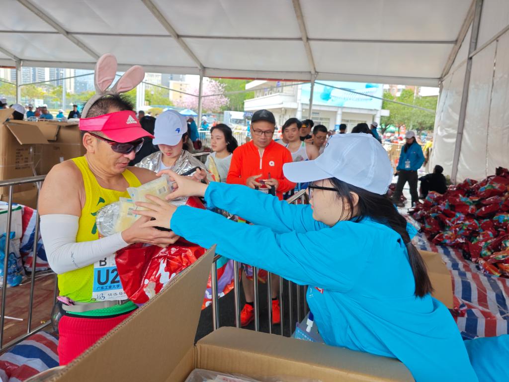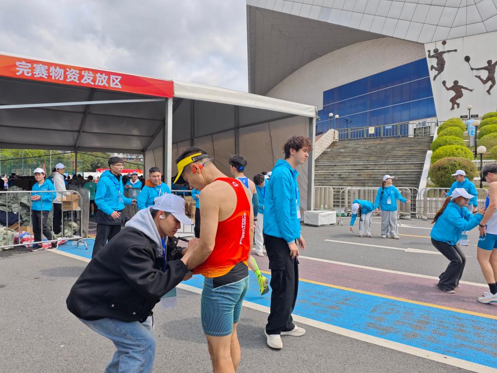 “雷锋同志说‘做一颗永不生锈的螺丝钉’,我们就是赛事最可靠的‘螺丝钉’。”志愿者张同学一边为选手贴上号码牌一边说道。赛后,志愿者们还贴心为完赛选手递上奖牌与补给、主动为体力透支的跑者递上红糖姜茶,协助医护人员进行赛后拉伸,用“钉钉子”般的细致服务温暖了无数完赛者的心。