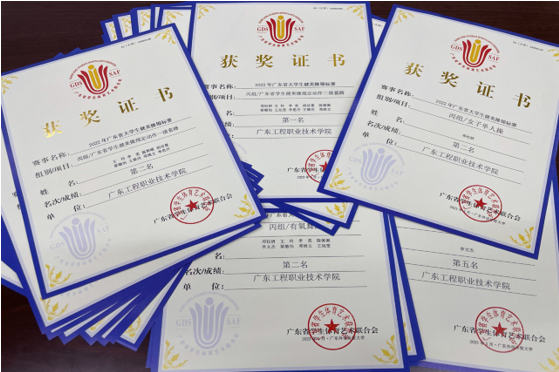 由广东省教育厅主办的2022年广东省大学生健美操锦标赛于2023年5月13日至14日于广东省外语外贸大学(南校区)隆重举行。在学校领导的关心和各部门的大力支持下,由公共课教学部别业军主任领队,胡映珍、郭晓静、王瑞芳三位老师作为教练员,带领健美操队12名运动员,经过3个月的刻苦训练和认真筹备,参加了5个项目的角逐,取得广东省学生健美操规定动作二级套路冠军、有氧舞蹈自选套路第二名、女子单人竞技健美操第二名、广东省学生健美操规定动作一级套路第二名、男子单人竞技健美操第五名,团体总分一等奖的优异成绩,圆满完成此次比赛任务。
