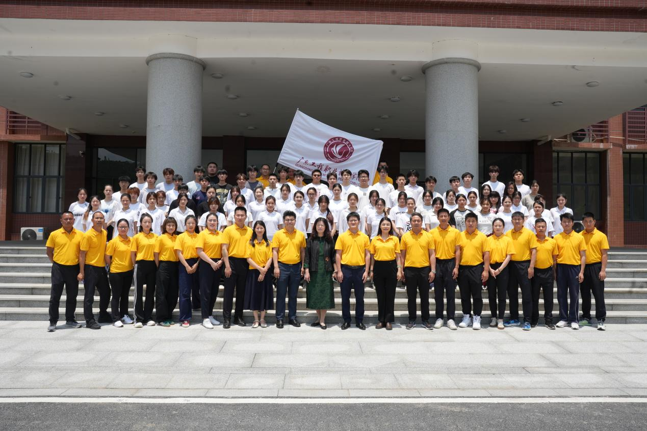 广东省第十二届大学生运动会将于2025年5月5日至29日在广州市举行。为推进我校体育高质量发展,凝心聚力、鼓舞士气,4月29日中午,广东省第十二届大学生运动会广东工程职业技术学院代表团出征动员大会在省职教城校区办公楼一楼报告厅顺利召开。校党委副书记方燕、副校长吴志敏等校领导,体育健康学院党政领导班子成员以及代表团全体教练员、运动员共计106人出席大会。会议由体育健康学院党委书记邱志远主持。