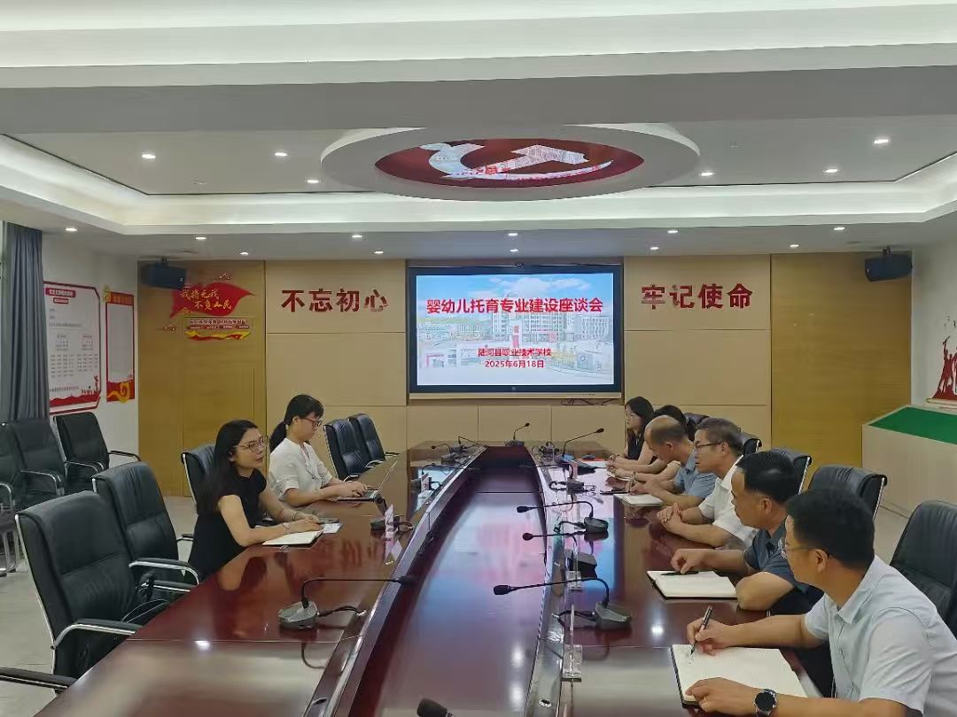 为深化中高职协同育人机制,积极探索托育人才培养新模式,2025年6月18日,体育健康学院院长周琳、文秘教研室主任高美玲前往陆河县职业技术学校,就婴幼儿托育专业"三二分段"中高职贯通培养合作开展深入调研考察。陆河县职业技术学校党总支书记彭永碧、校长曹仁渐、副校长徐帝坚携相关部门负责人及专业教师团队热情接待,双方围绕专业共建与人才共育展开了全面且富有成效的探讨。
