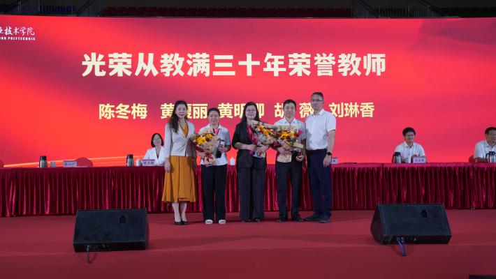 岭南秋日,金风送爽。秋菊溢彩,桃李芬芳。9月10日,学校在省职教城校区体育馆隆重举行2025年教师节庆祝表彰大会暨师德建设主题教育月活动启动仪式,庆祝第41个教师节。
